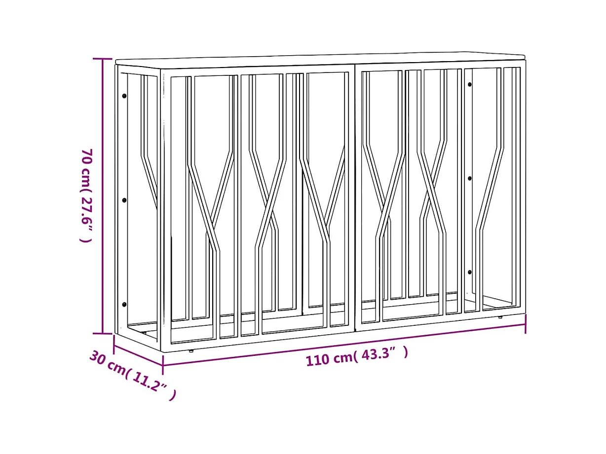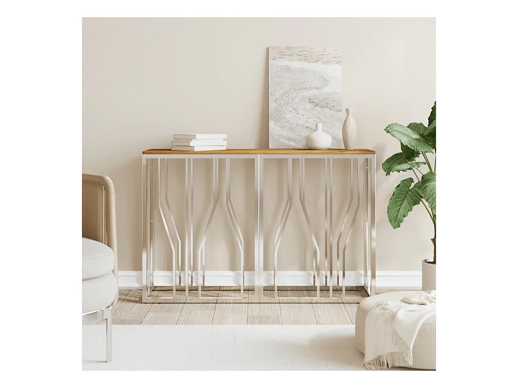 Table console argenté 110x30x70 cm acier inoxydable et verre