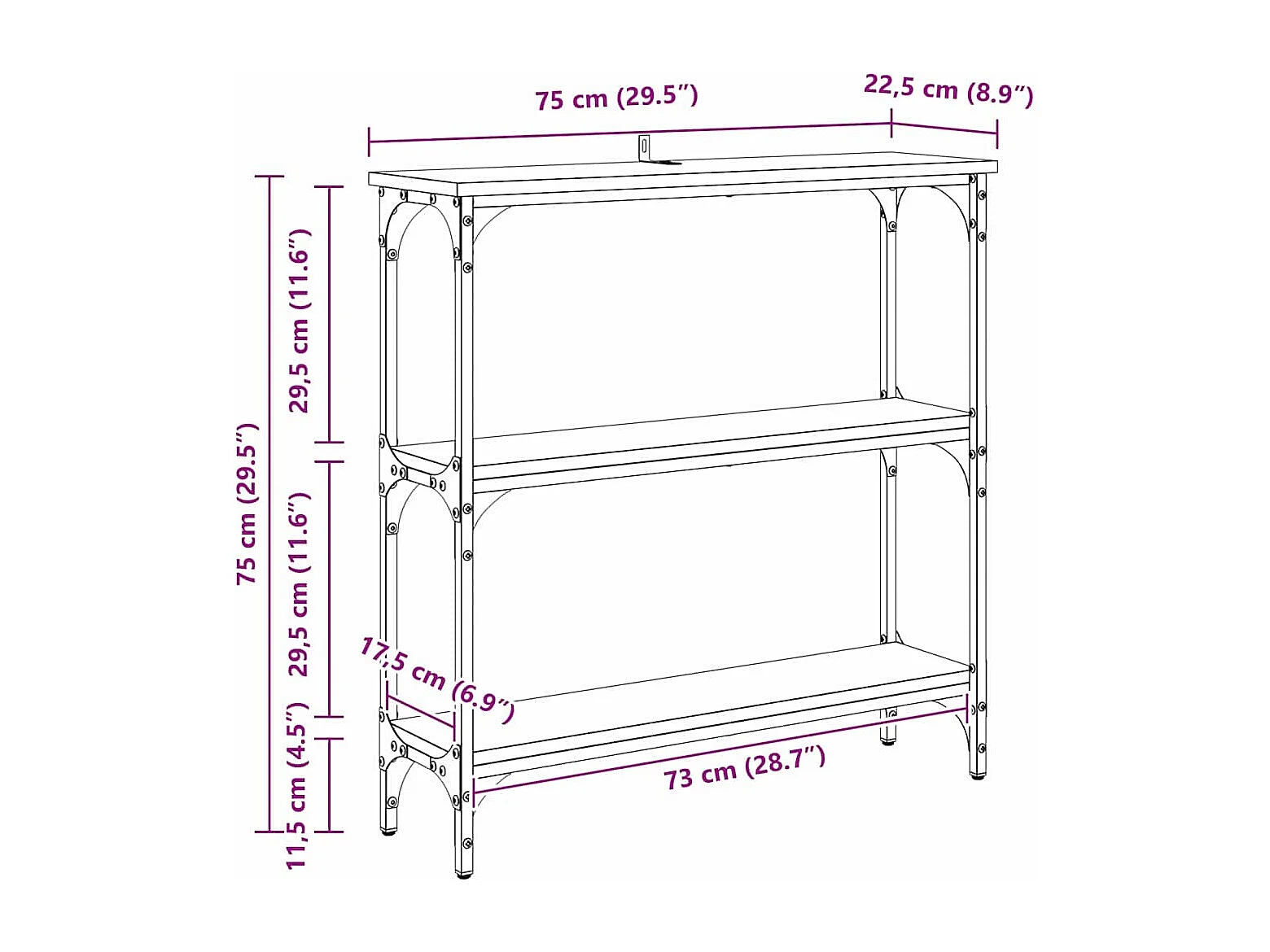 Table console avec étagère Bois ancien 75 x 22.5 x 75 cm