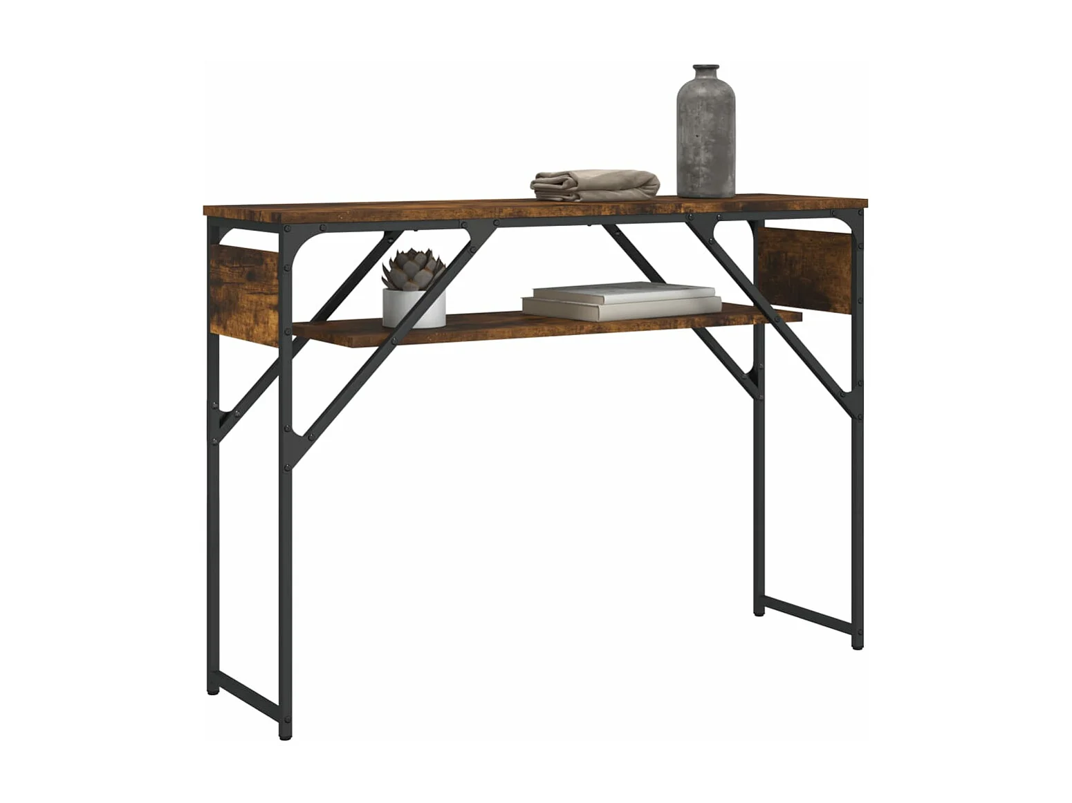 Table console avec étagère chêne fumé 105x30x75 cm GHR12988