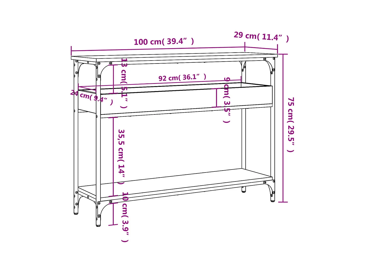 Table console chêne fumé 100x29x75 cm bois d'ingénierie