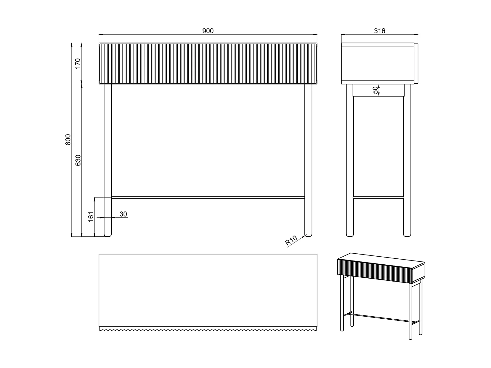 Table console avec tiroir - debout - 90 cm - couleur du bois de frêne Portland- NOLIE