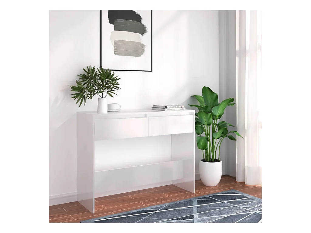 Table console Blanc brillant 105x30x80 cm Aggloméré