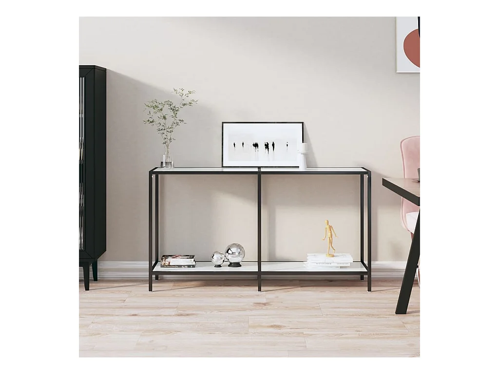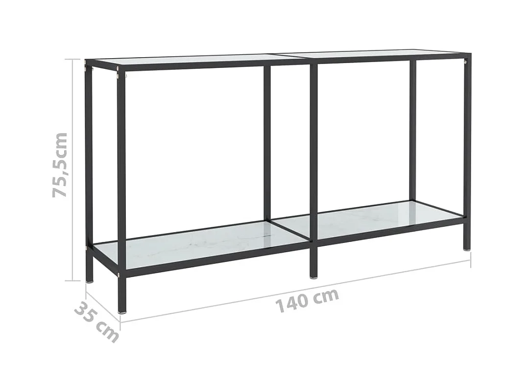 Table console Marbre blanc 140x35x75,5 cm Verre trempé