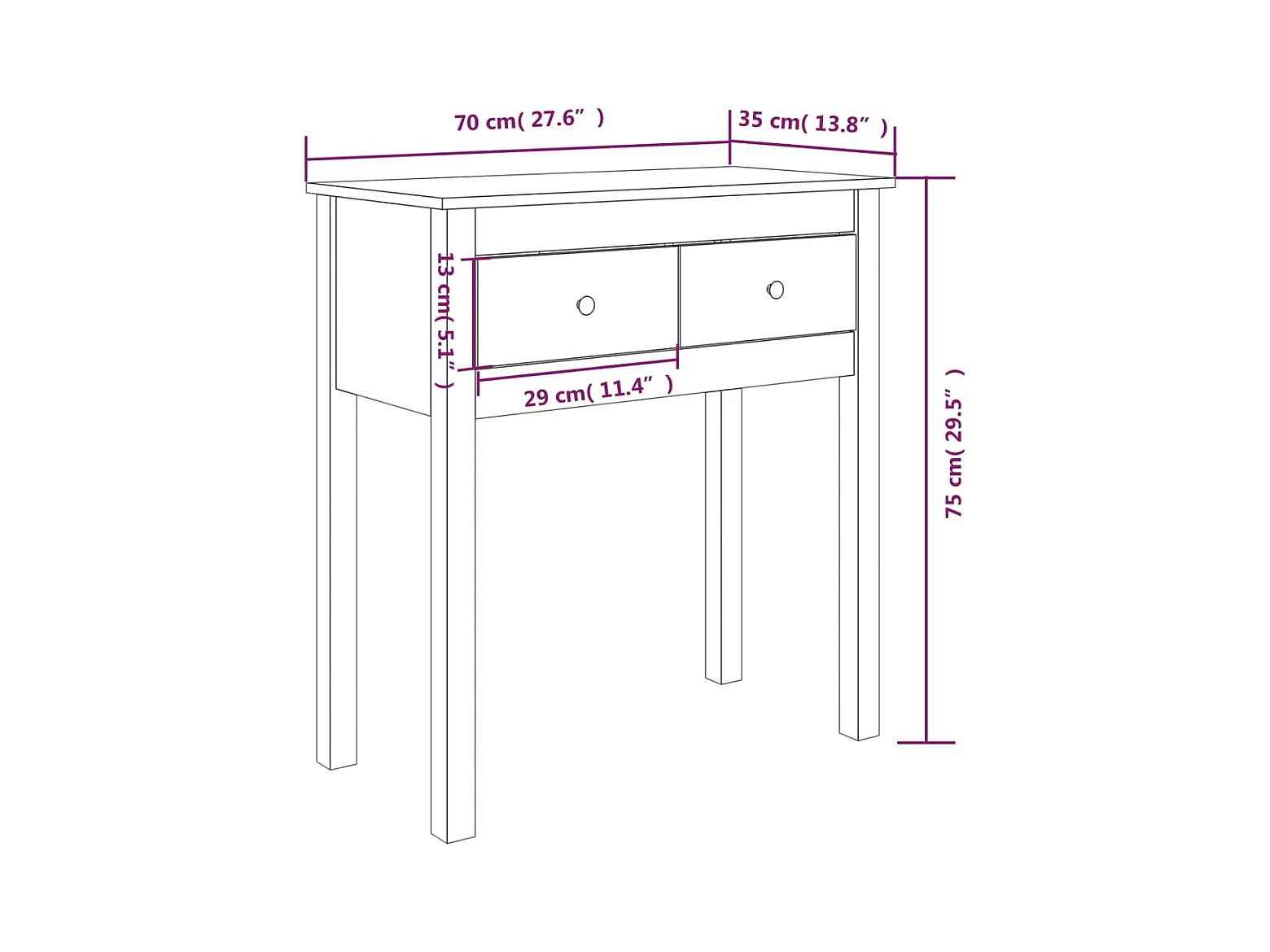 Table console Blanc 75x35x75 cm Bois massif de pin