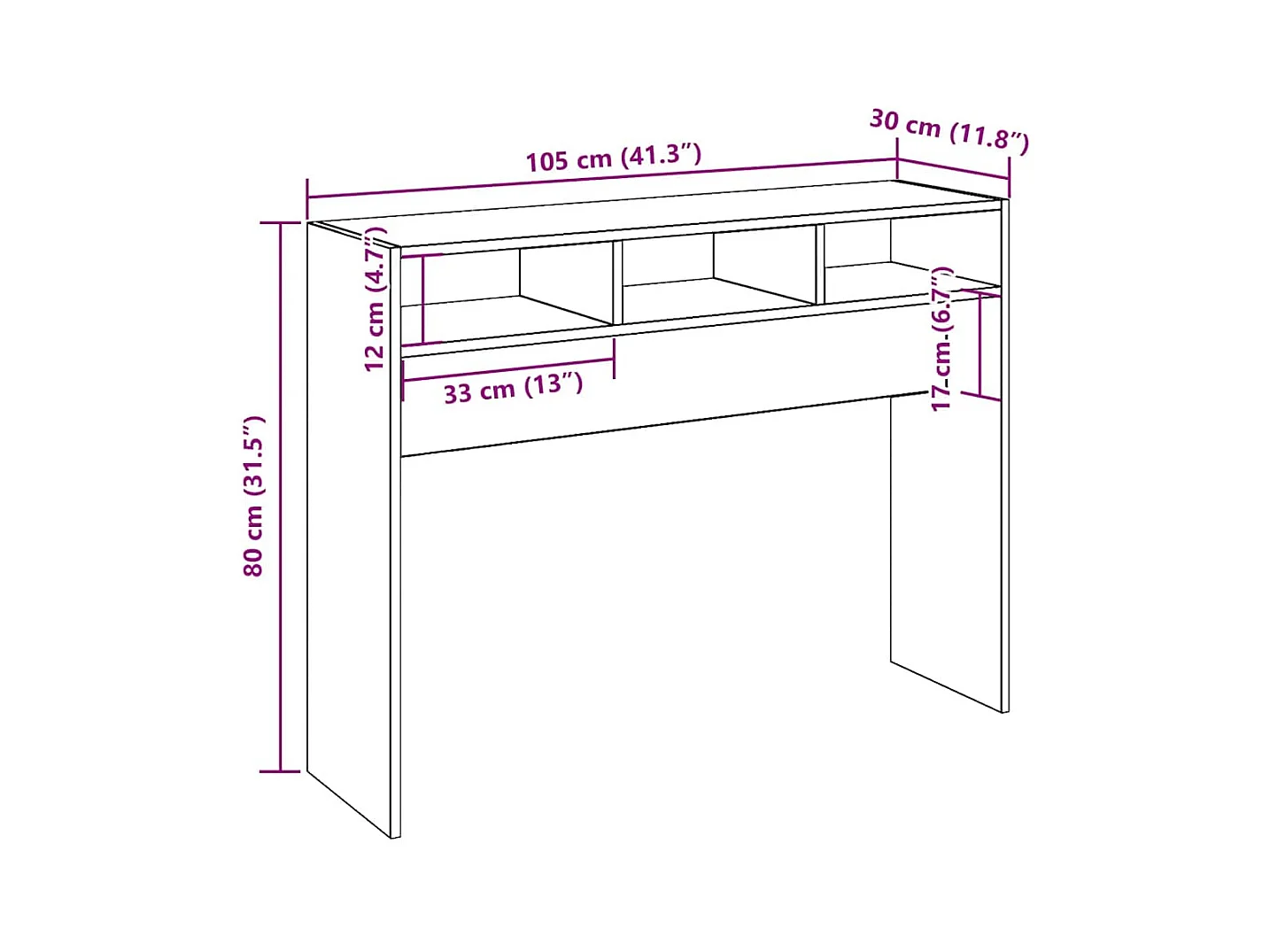 Table console chêne artisanal 105x30x80 cm bois d'ingénierie