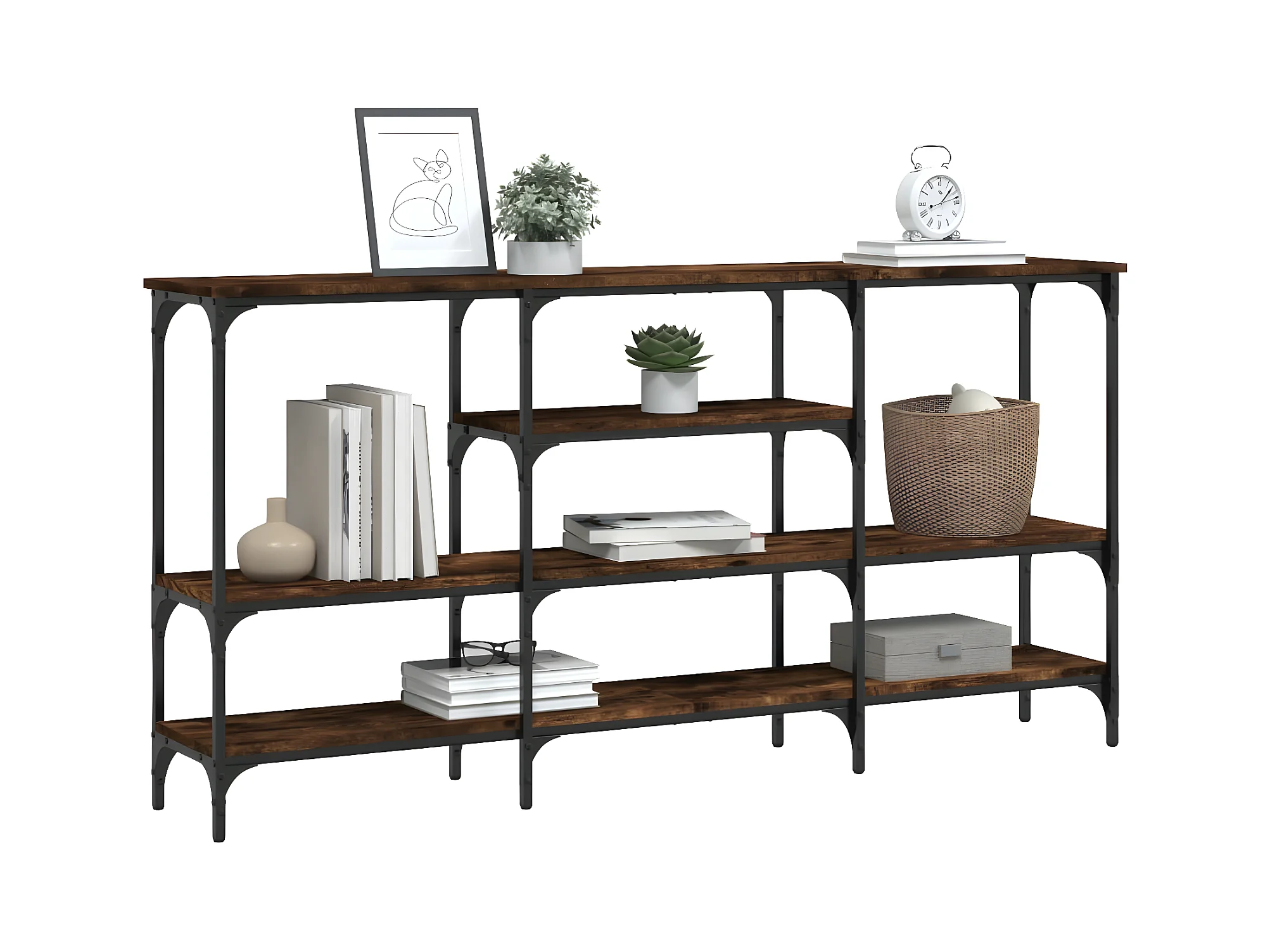 Table console chêne fumé 160x30x75 cm bois d'ingénierie et fer GHR61449