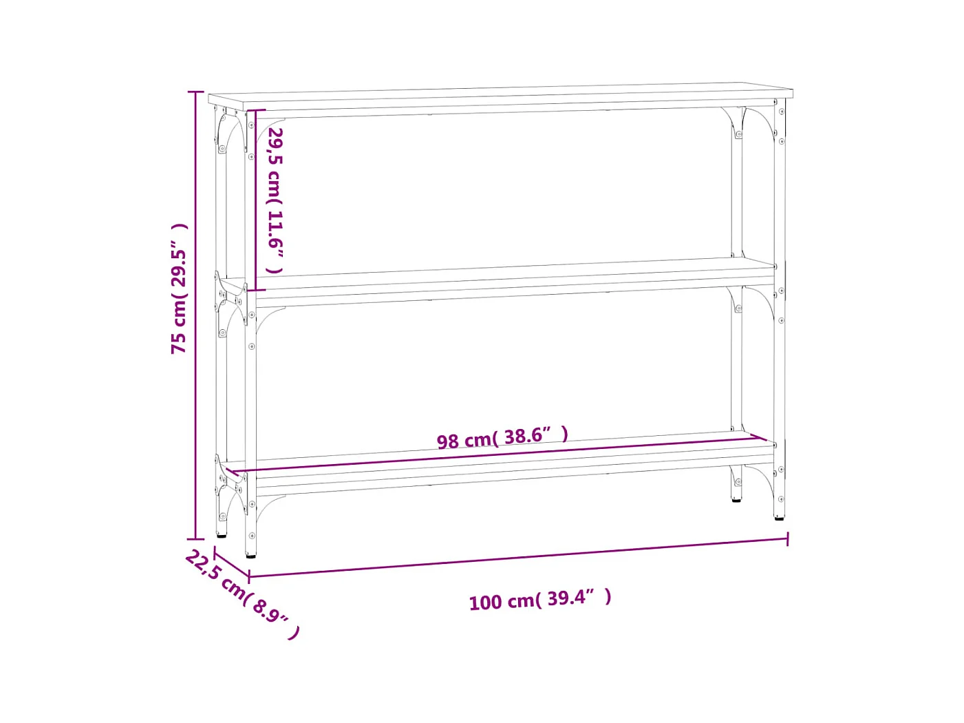 Table console chêne sonoma 100x22,5x75 cm bois d'ingénierie