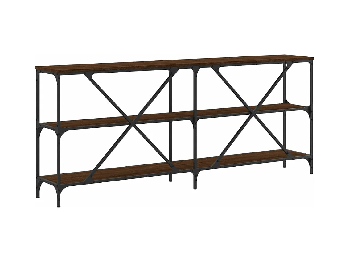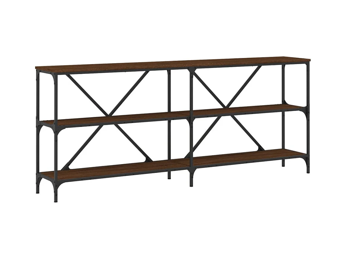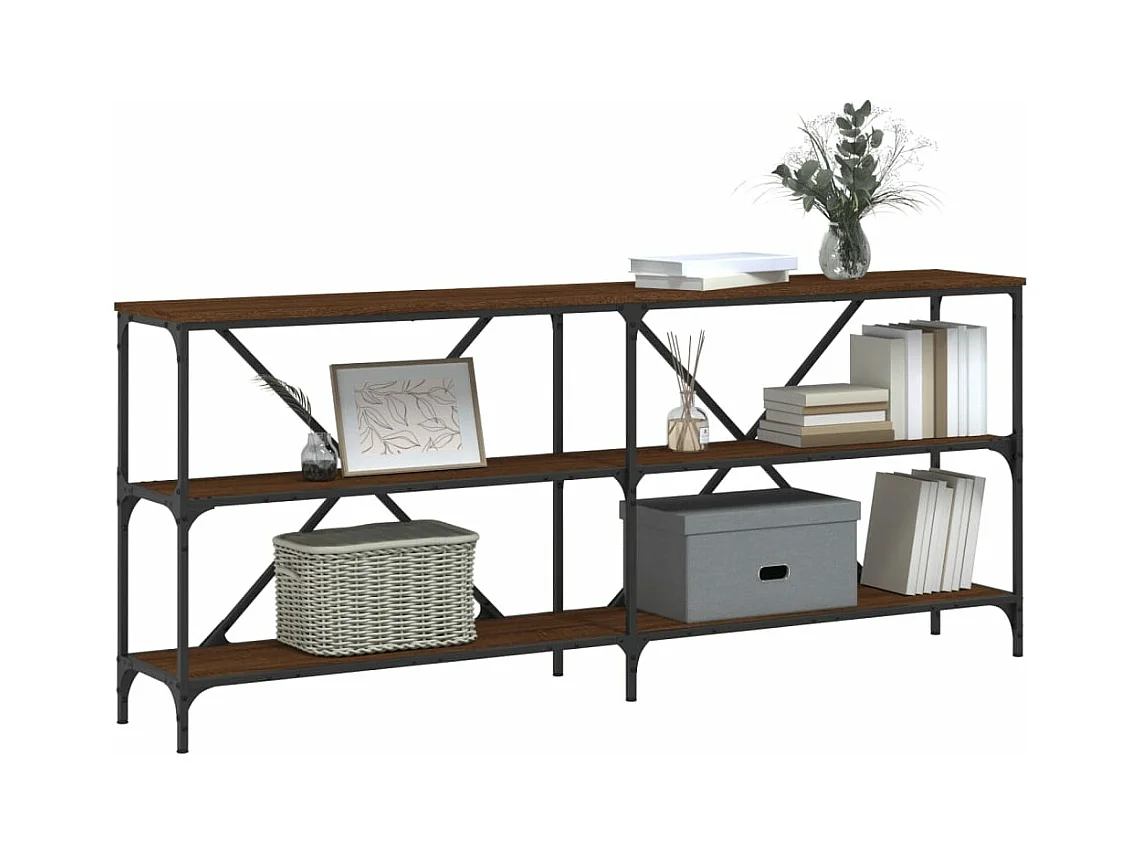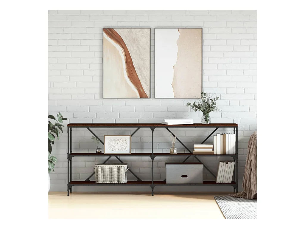 Table console chêne fumé 200x30x75 cm bois d'ingénierie et fer