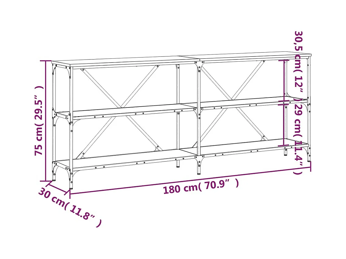 Console chêne fumé 88,5x30x75 cm bois d'ingénierie OFR62212 BonneVie Meuble