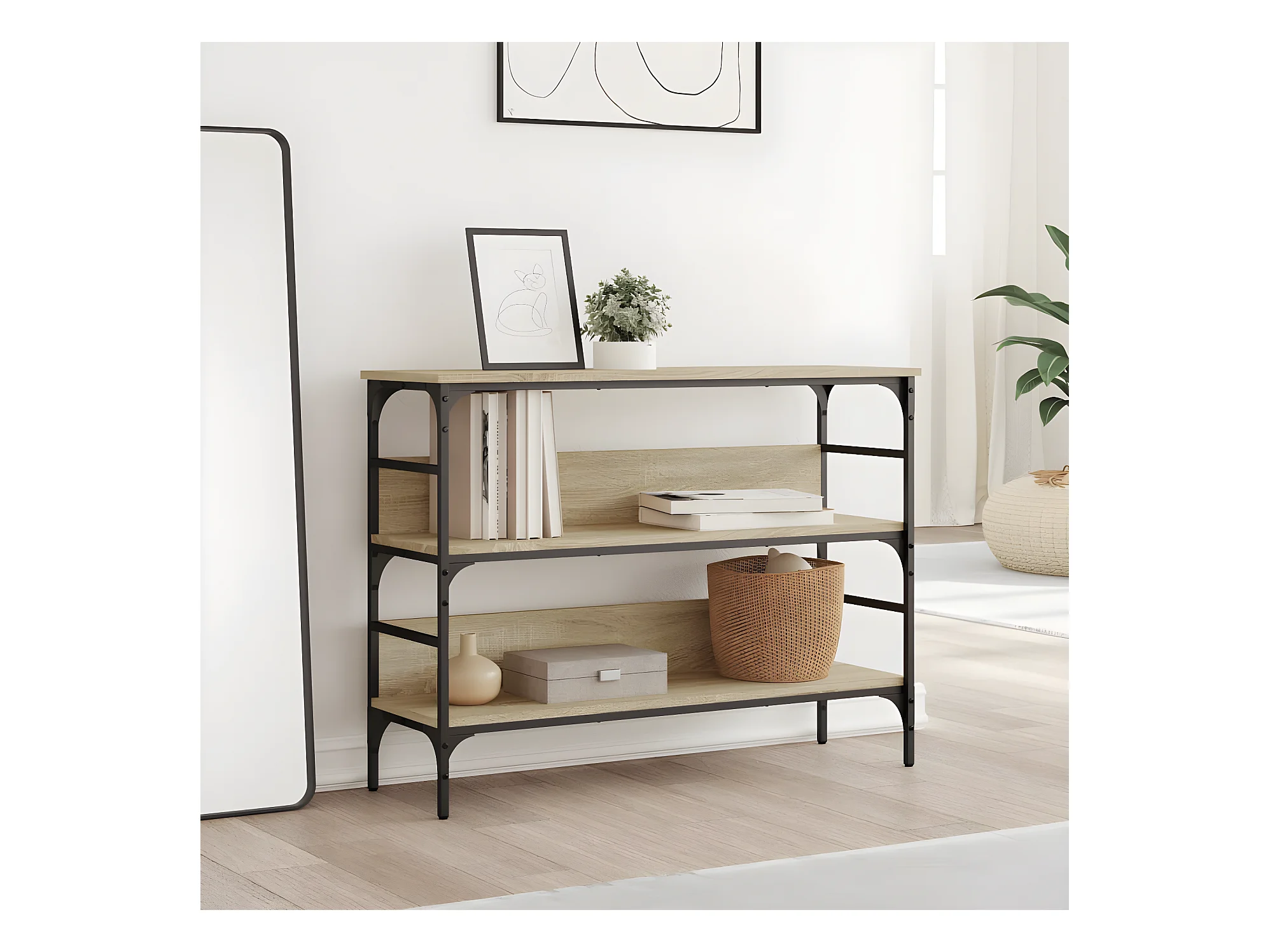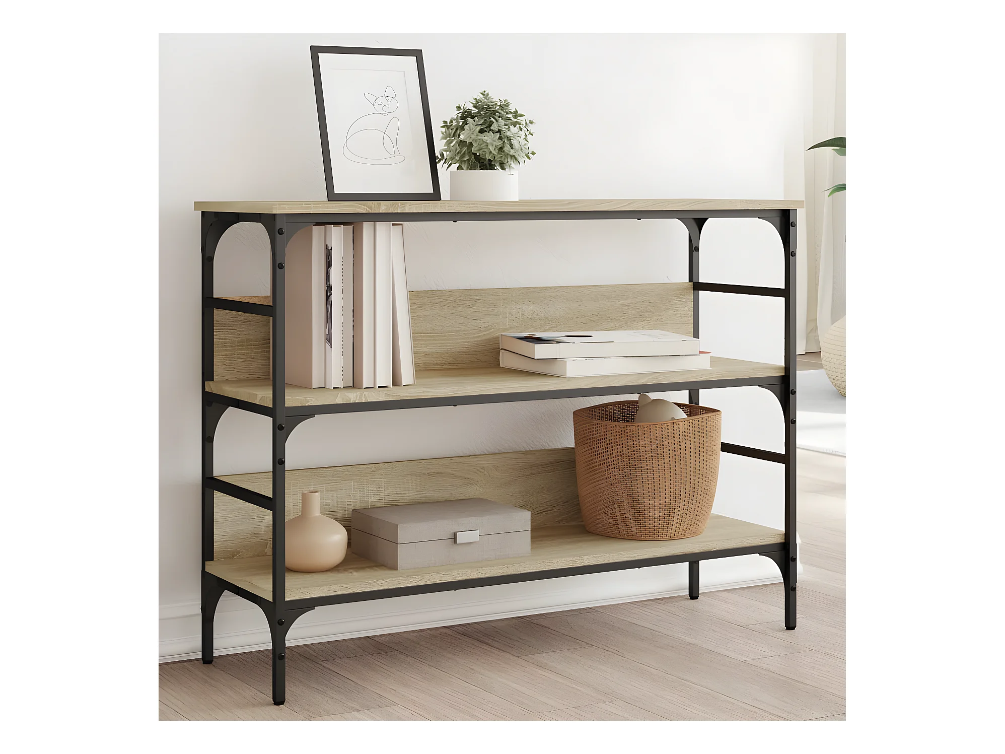 Table console avec étagère chêne sonoma 100x29x75 cm GHR89667