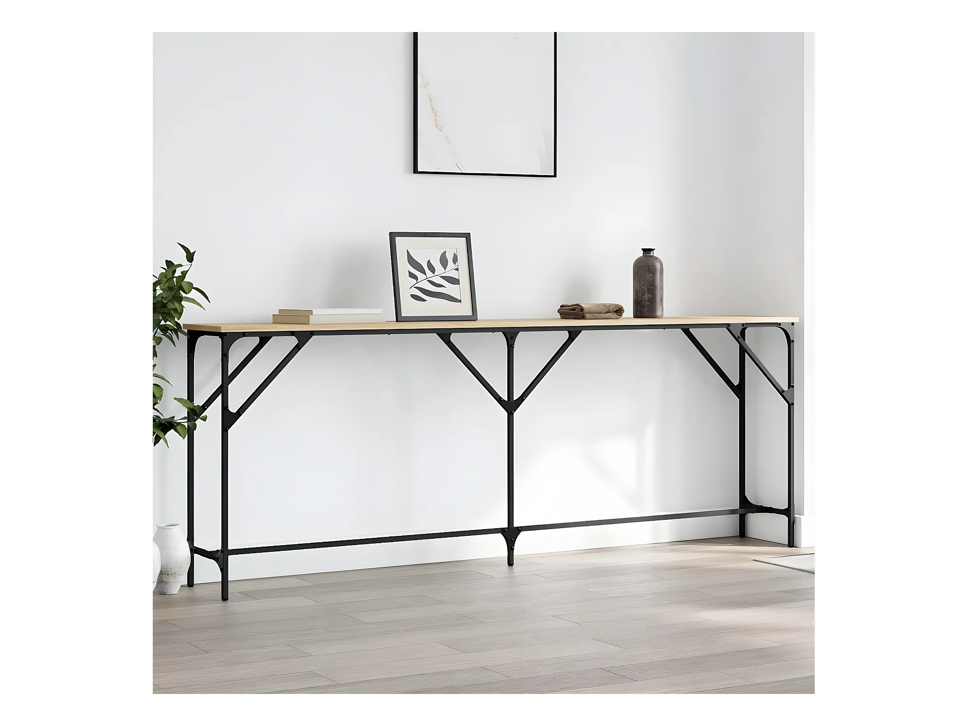 Table console chêne sonoma 180x30x75cm bois d'ingénierie et fer GHR78018