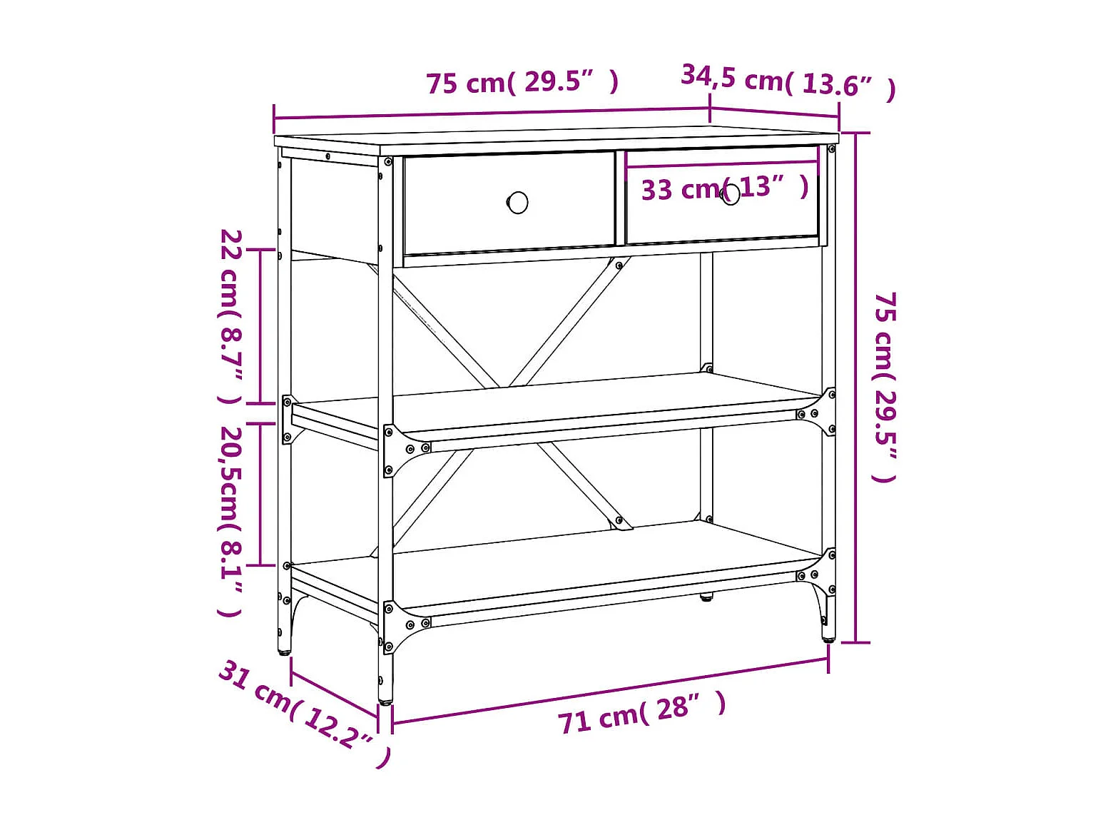 Table console chêne sonoma 75x34,5x75 cm bois d'ingénierie