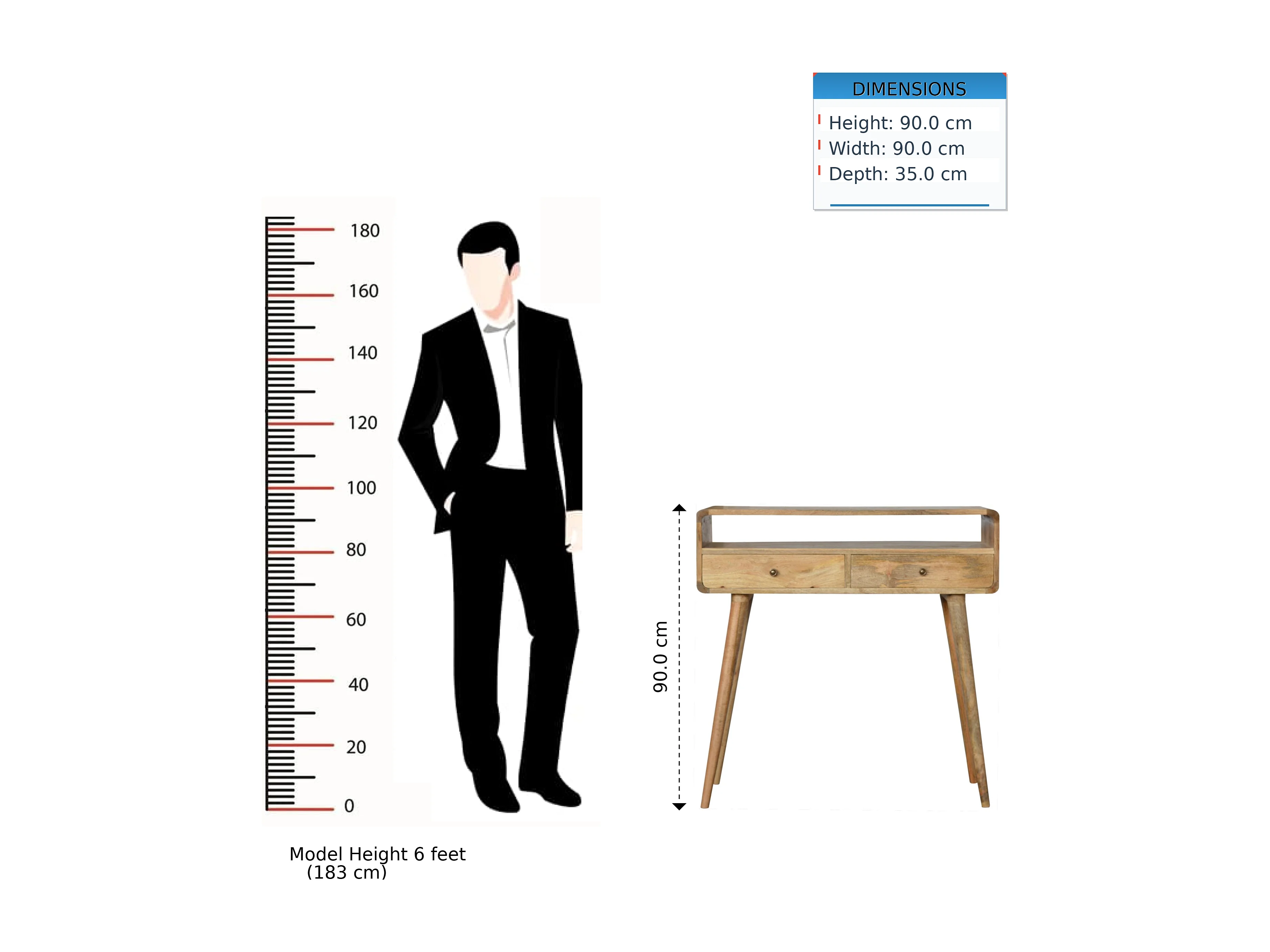 Console courbée style chêne Artisan Furniture, 2 tiroirs, 1 étagère ouverte, marron clair