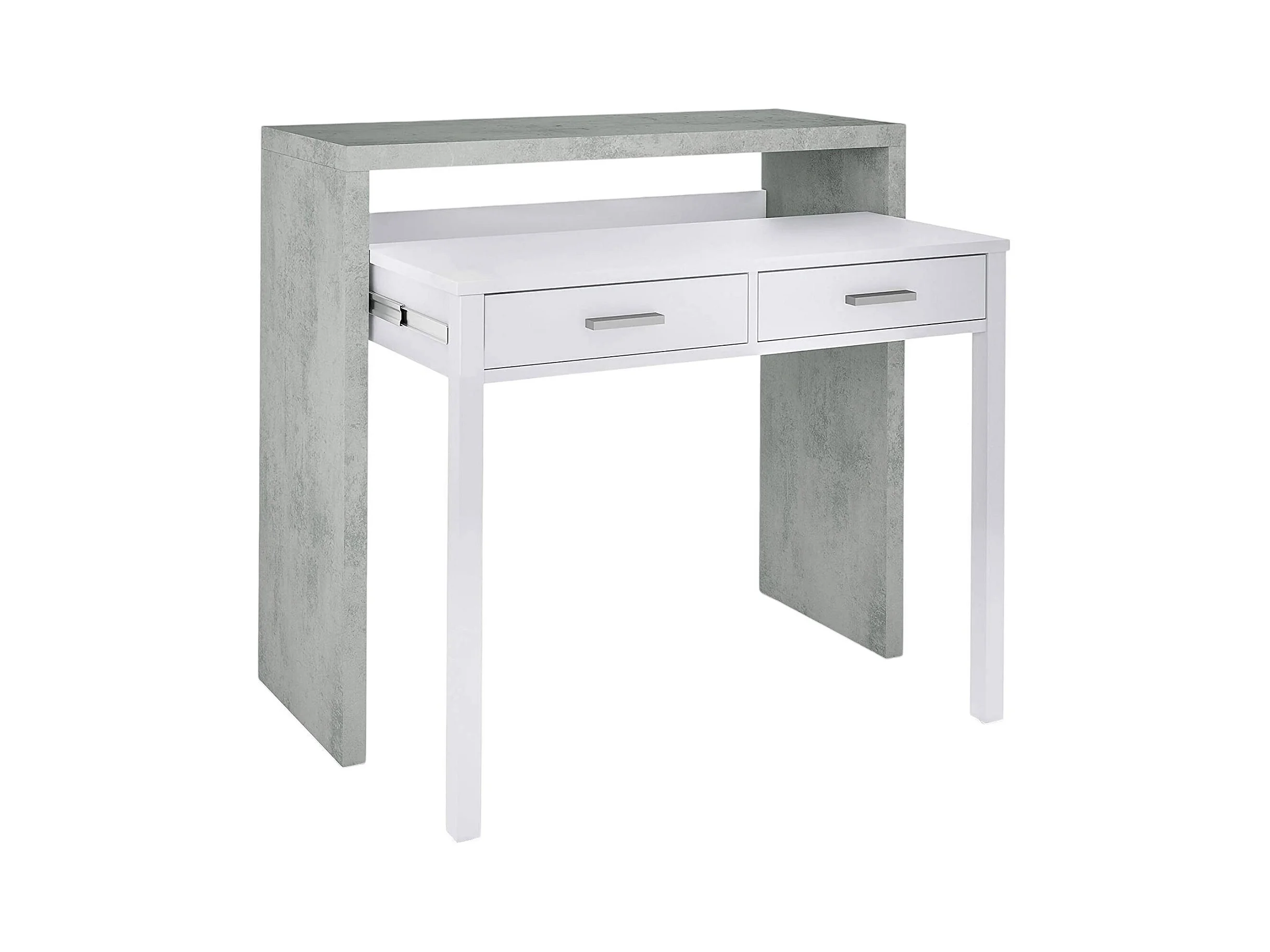 Bureau Damodi, Bureau avec plateau extensible, Bureau PC avec 2 tiroirs, 99x36h88 cm, Ciment et Blanc