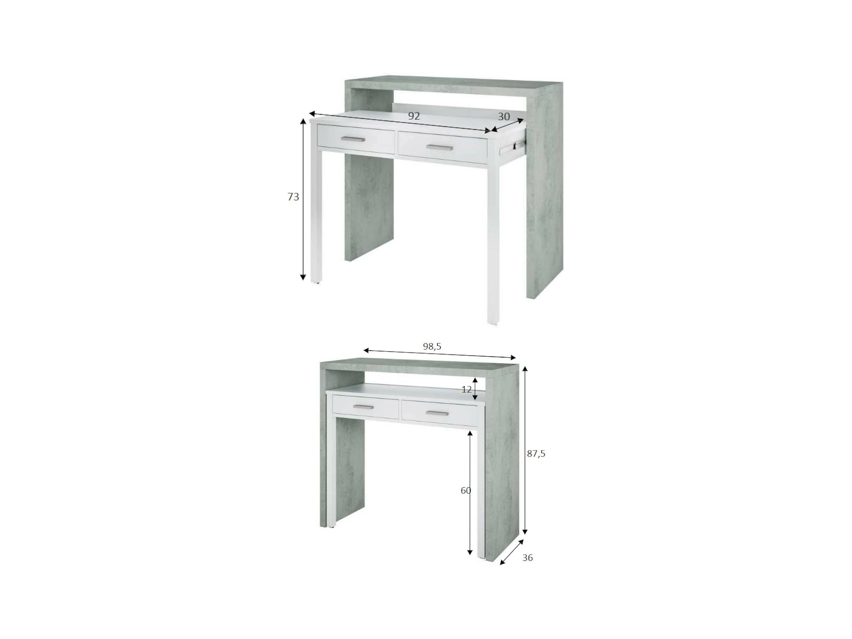 Console extensible double plateau 120x45-90 ou 120-200x45-90 Kouta-Couleur Gris ciment-Largeur 120 cm