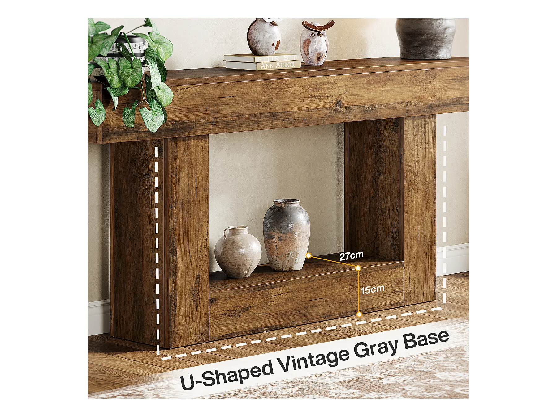 Petite table console de 105 cm pour entrée, table de canapé rustique à 3 niveaux