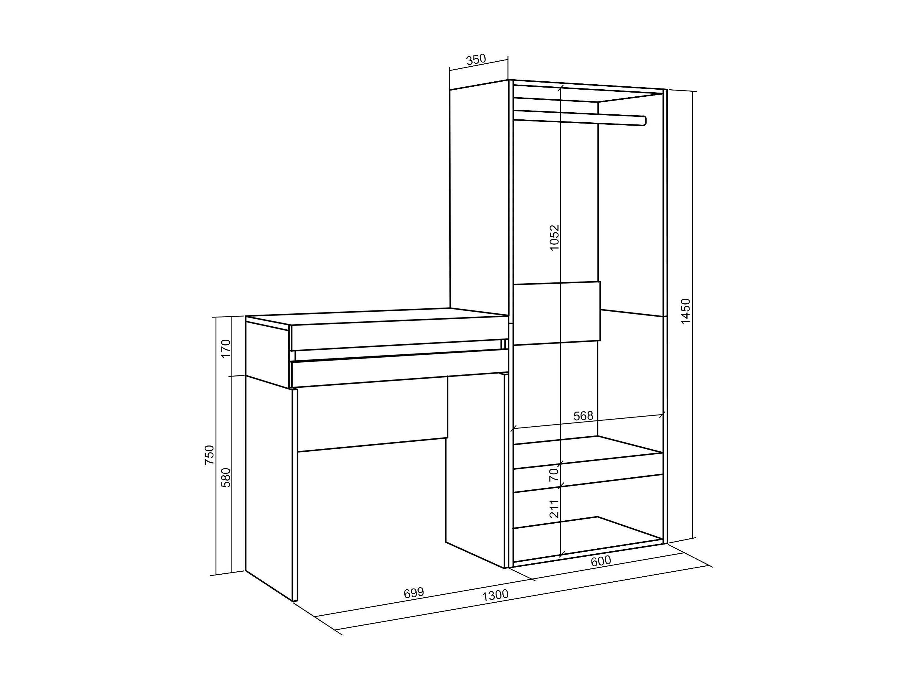 Table console d'entrée, 130x35x145cm, avec tiroir, Vestiaire ouvert, Chêne