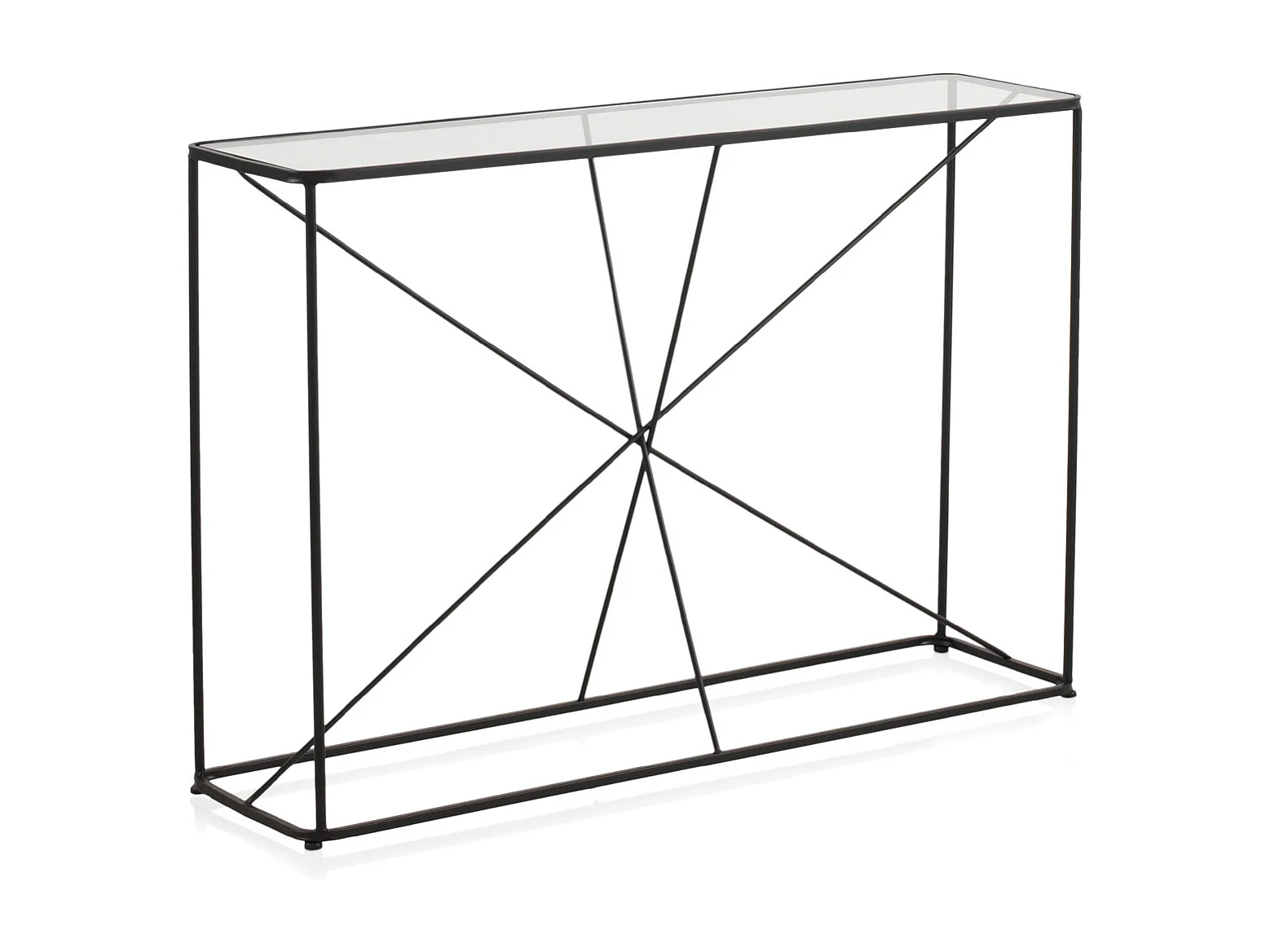 Table console en métal noir avec plateau en verre