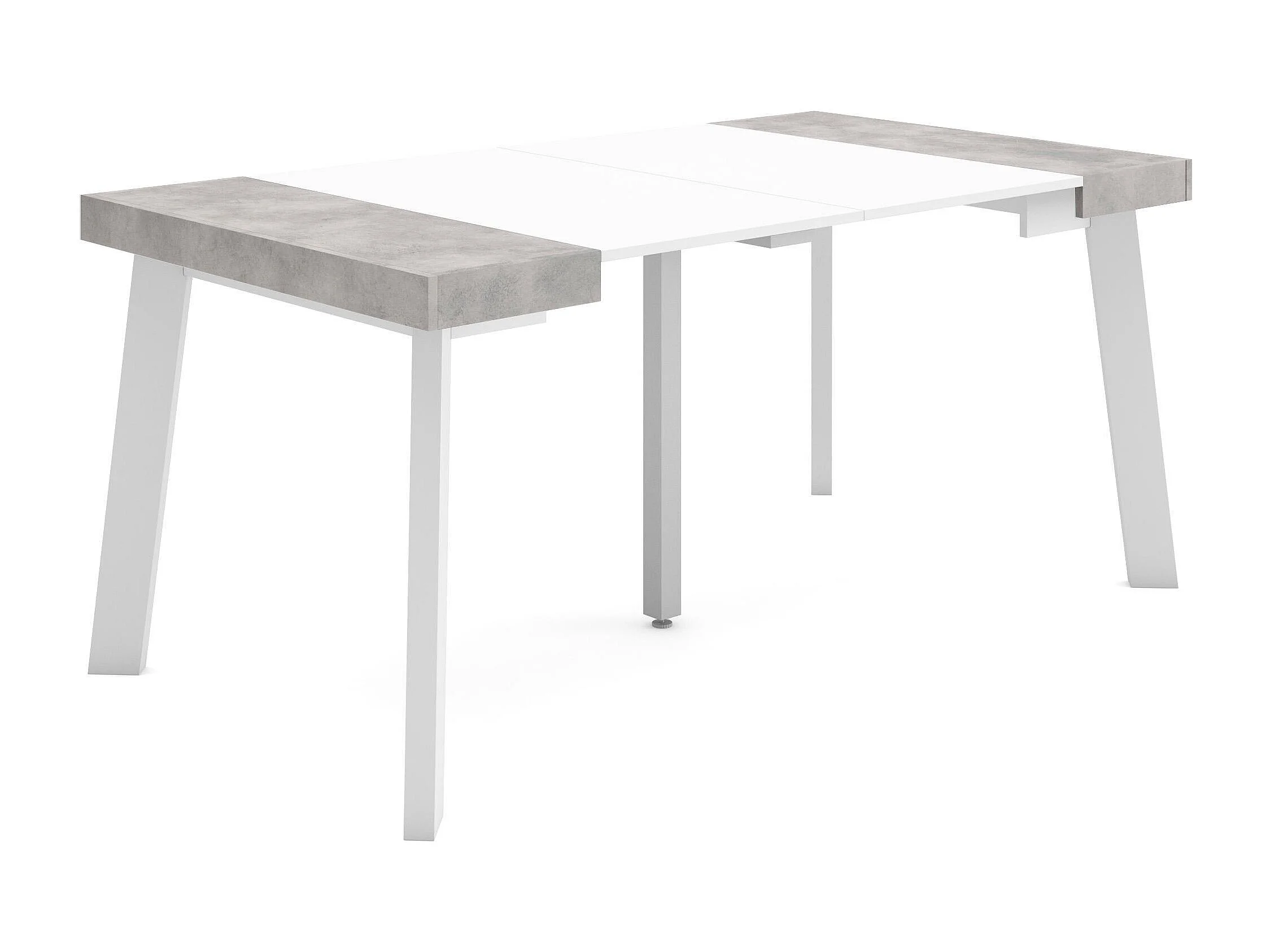 Table console extensible, 160x90x73cm, Pour 8 personnes, Pieds en bois, Blanc et ciment