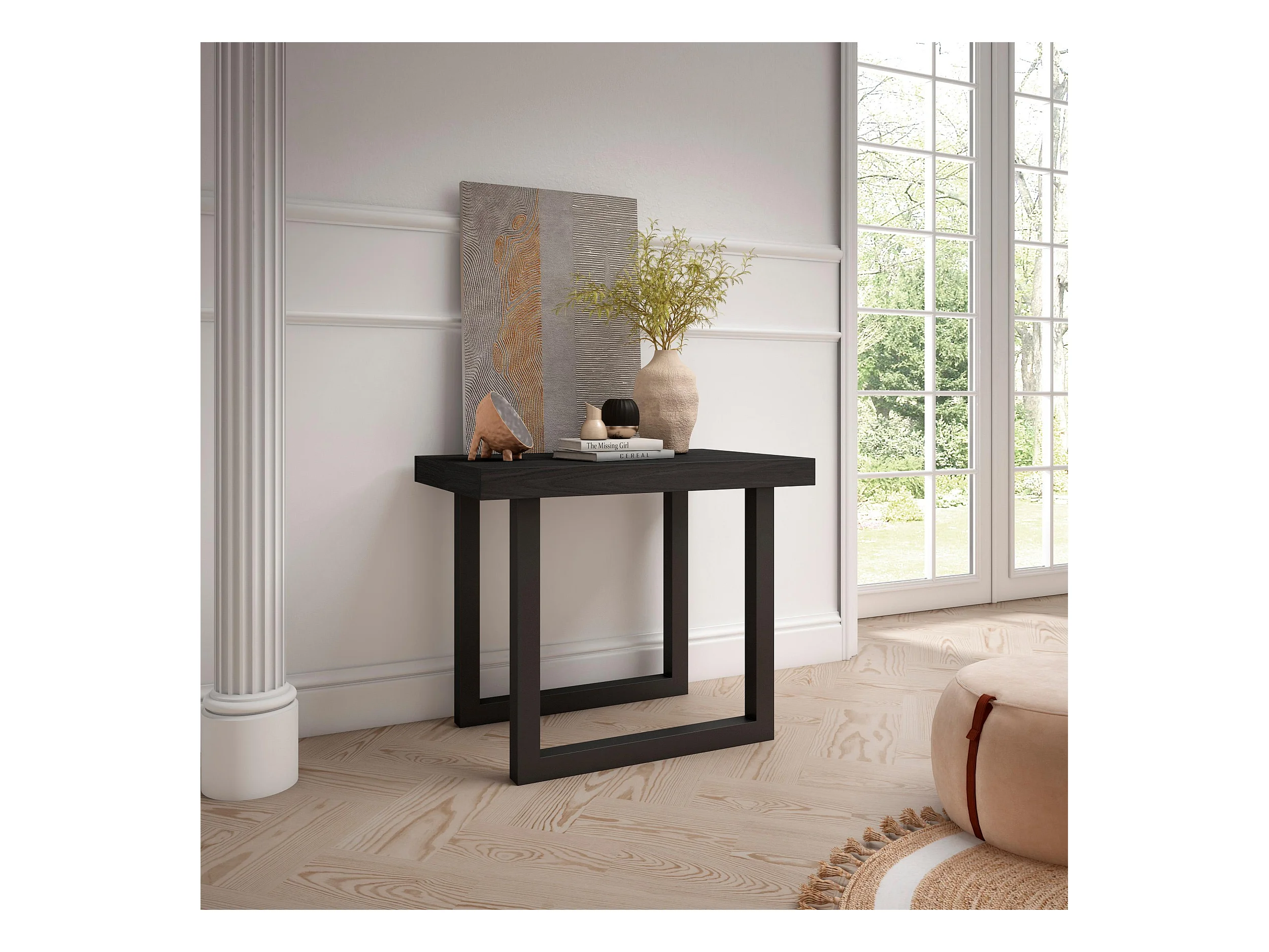 Table console extensible, 180x90x73cm, Pour 8 personnes, Pieds bois massif, Noir