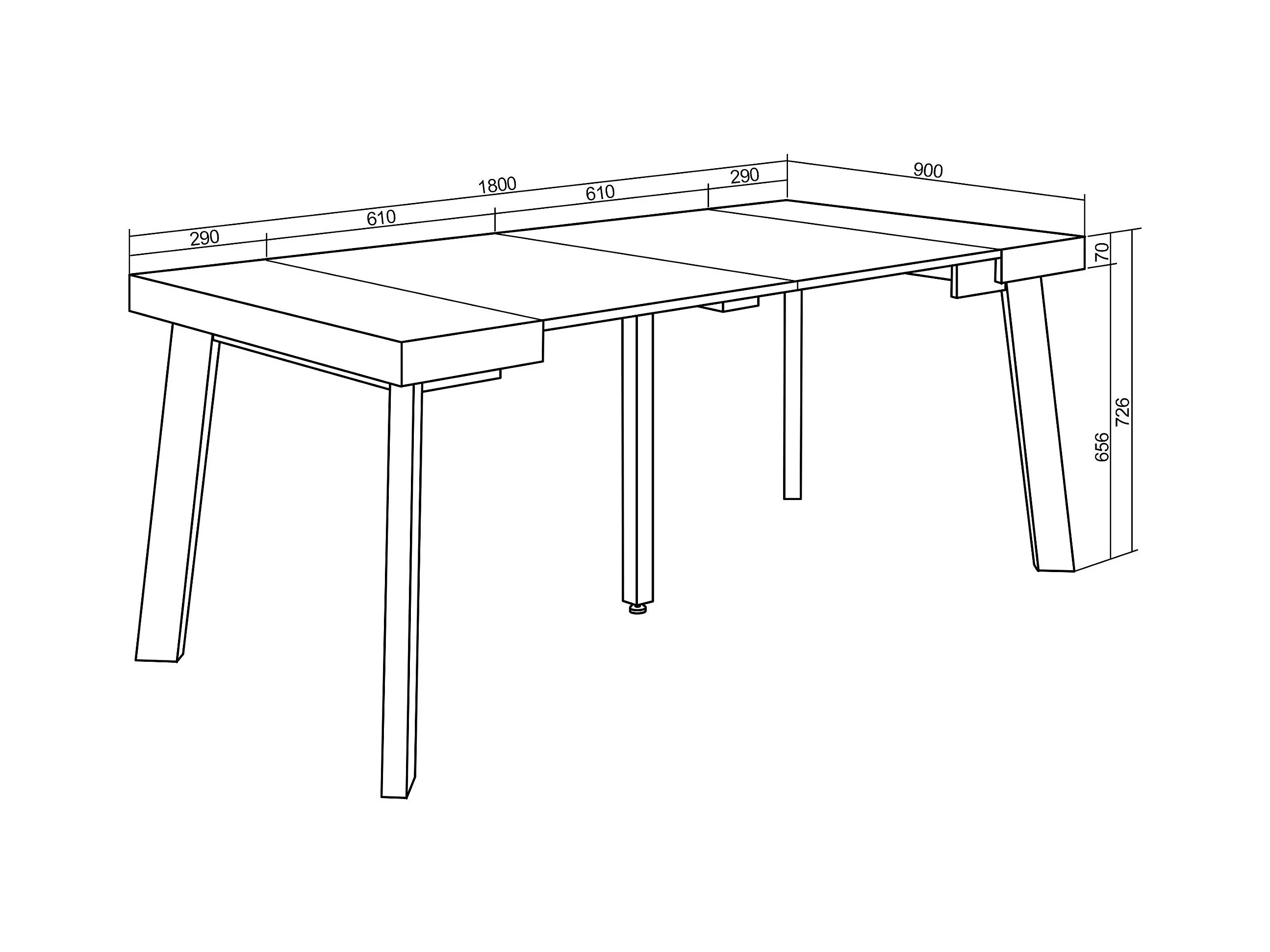 Table console extensible, 180x90x73cm, Pour 8 personnes, Pieds en bois, Chêne