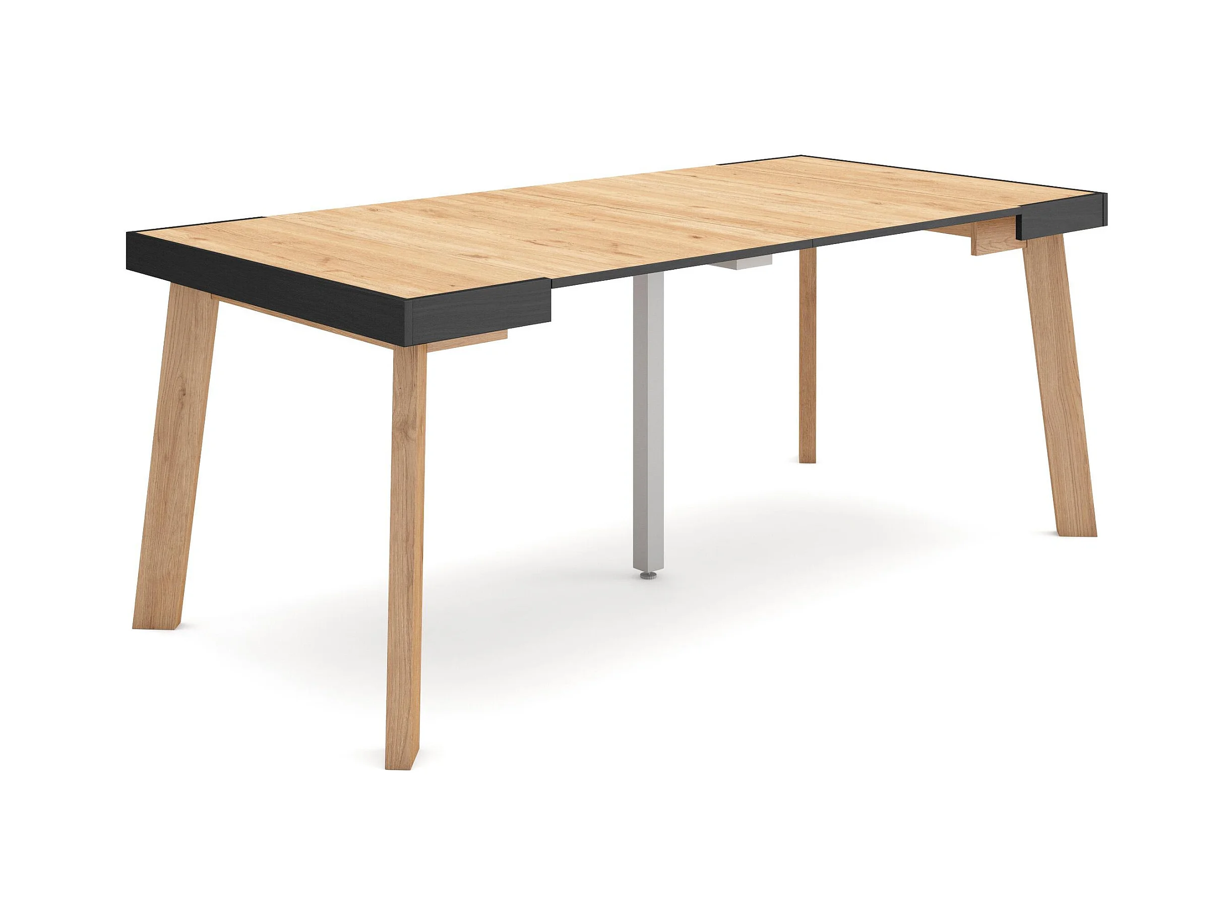 Table console extensible, 222x90x73cm, Pour 10 personnes, Pieds en bois, Chêne et noir