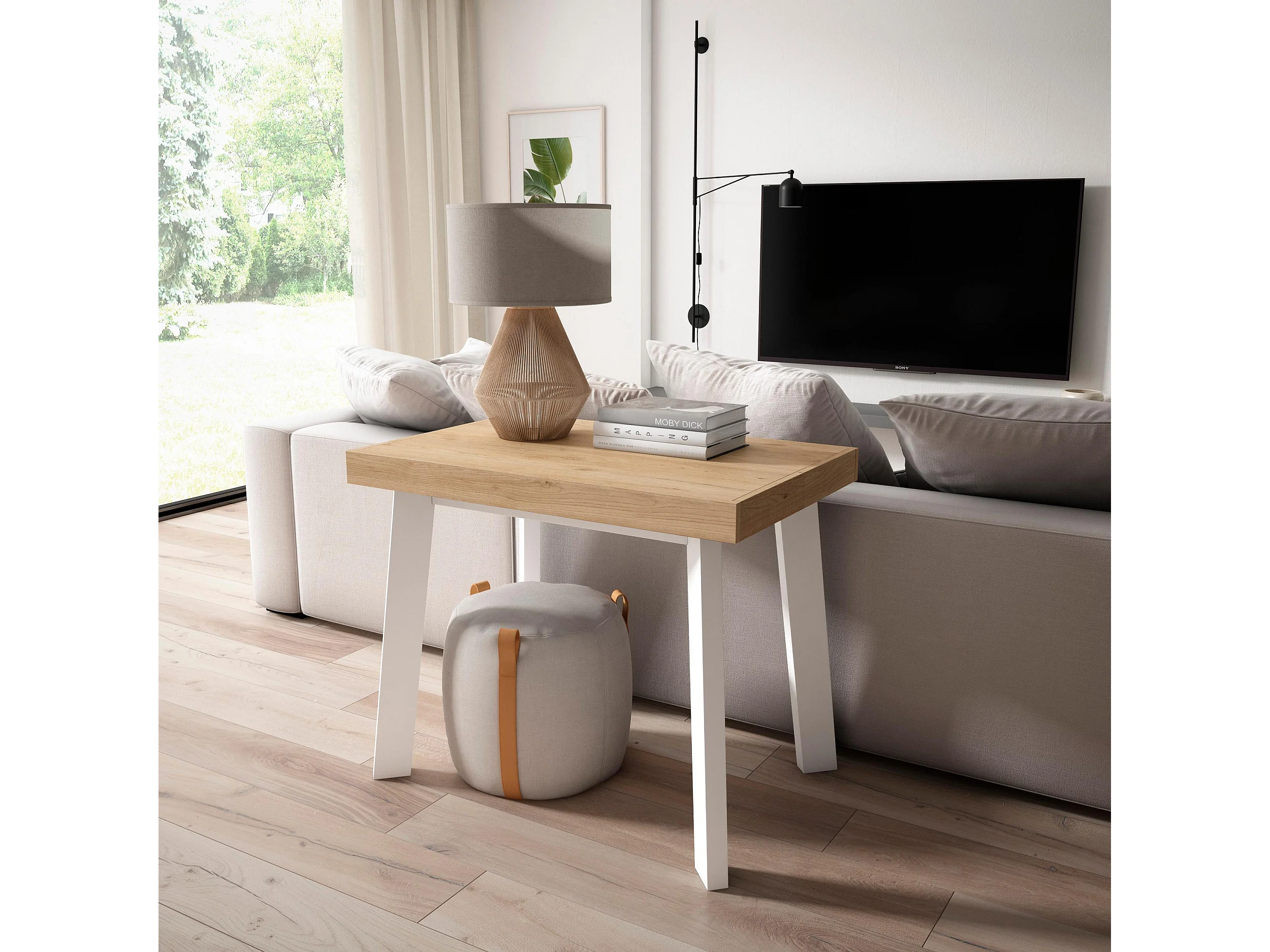 Table console extensible, 180x90x73cm, Pour 8 personnes, Pieds en bois, Chêne et blanc