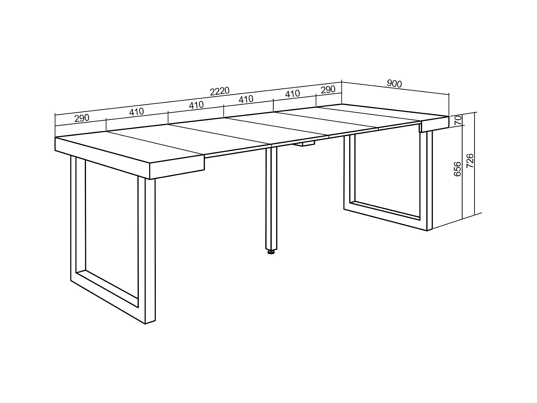 Table console extensible, 222x90x73cm, Pour 10 personnes, Pieds en bois, Chêne et noir