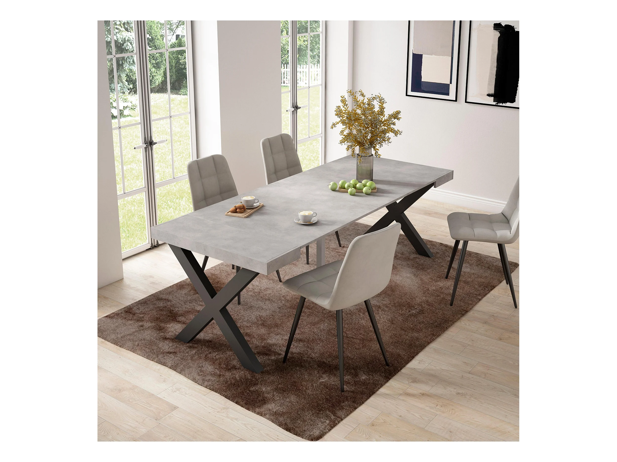 Table console extensible, 222x90x73cm, Pour 10 personnes, Pieds en bois, Ciment