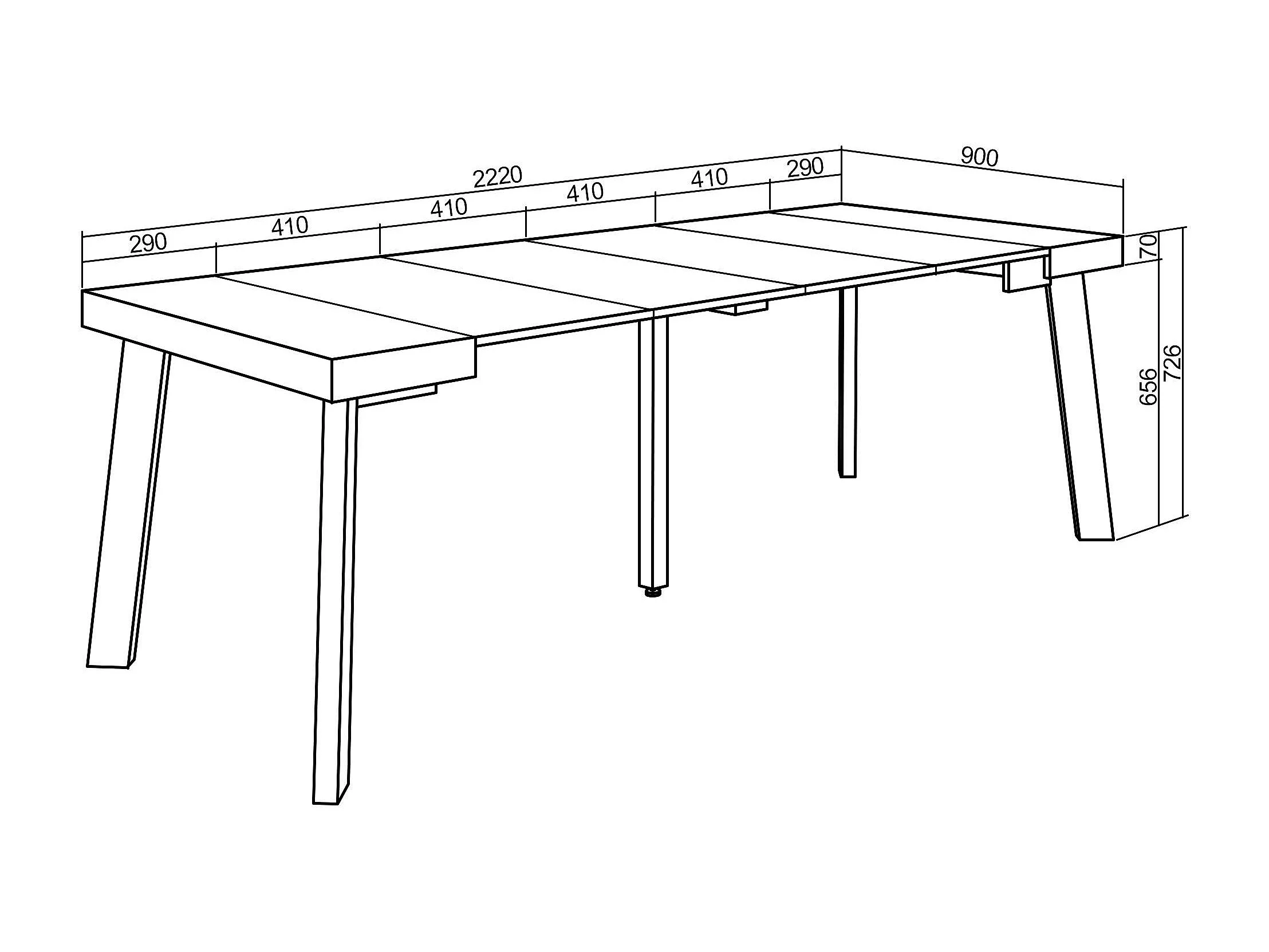 Table console extensible, 222x90x73cm, Pour 10 personnes, Pieds en bois, Blanc