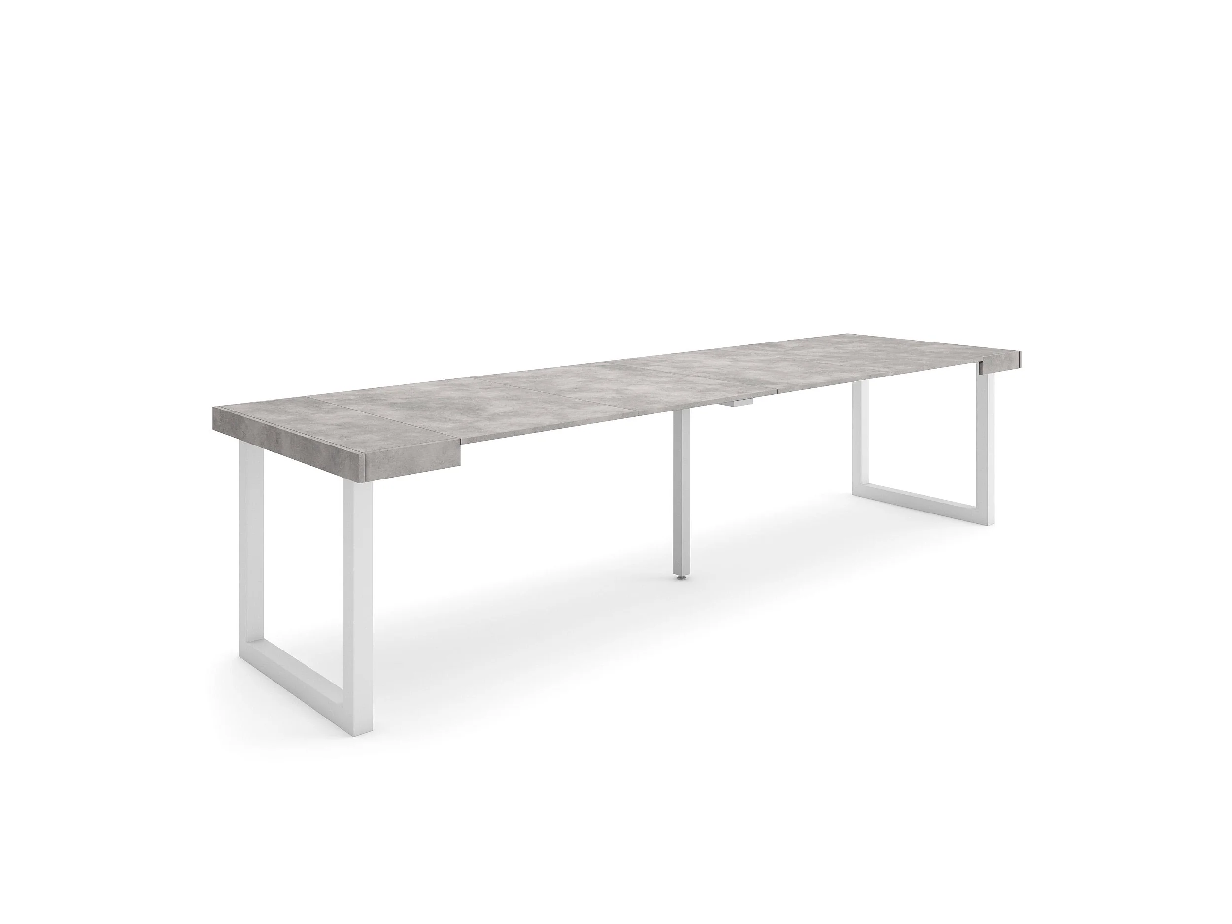 Table console extensible, 302x90x73cm, Pour 14 personnes, Pieds bois massif, Ciment