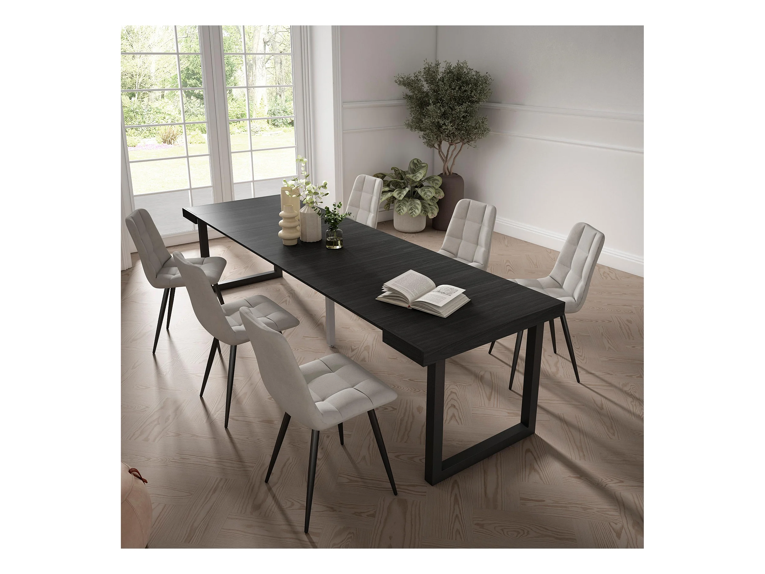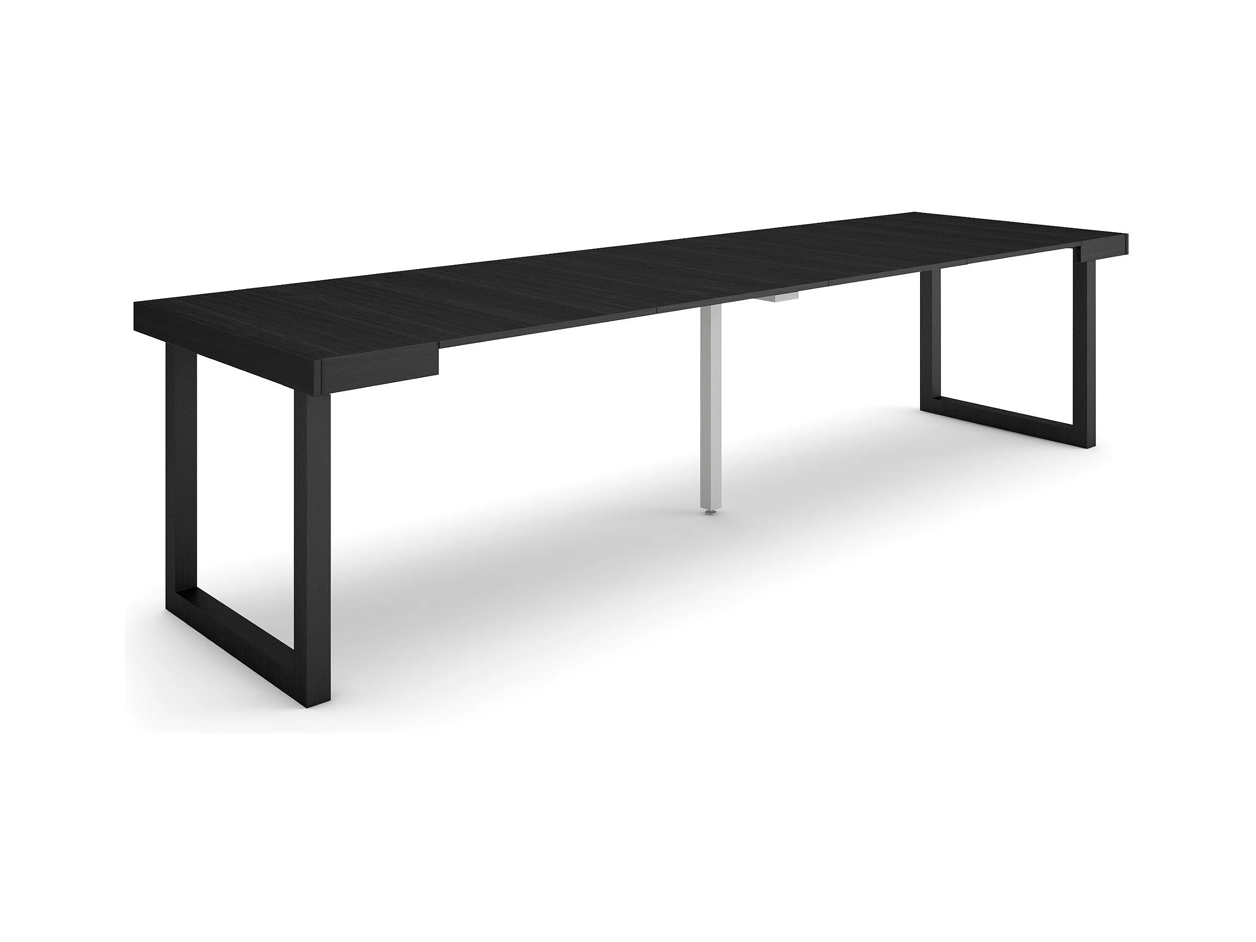 Table console extensible, 262x90x73cm, Pour 12 personnes, Pieds bois massif, Noir
