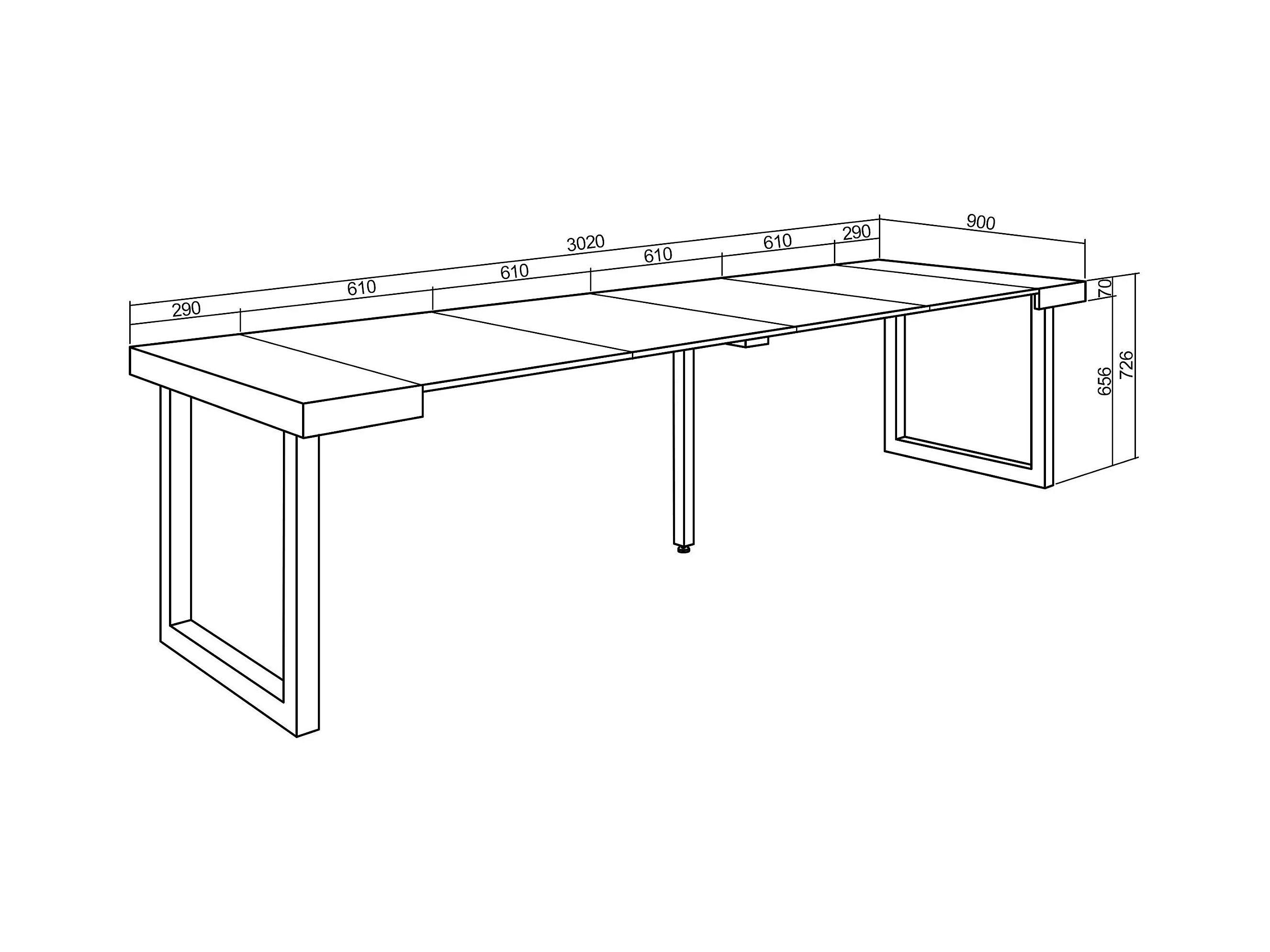 Table console extensible, 302x90x73cm, Pour 14 personnes, Pieds bois massif, Noir