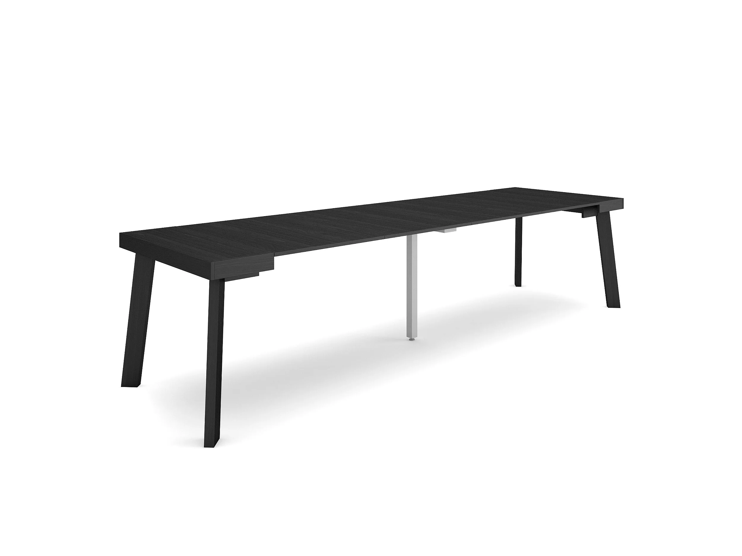 Table console extensible, 302x90x73cm, Pour 14 personnes, Pieds en bois, Noir