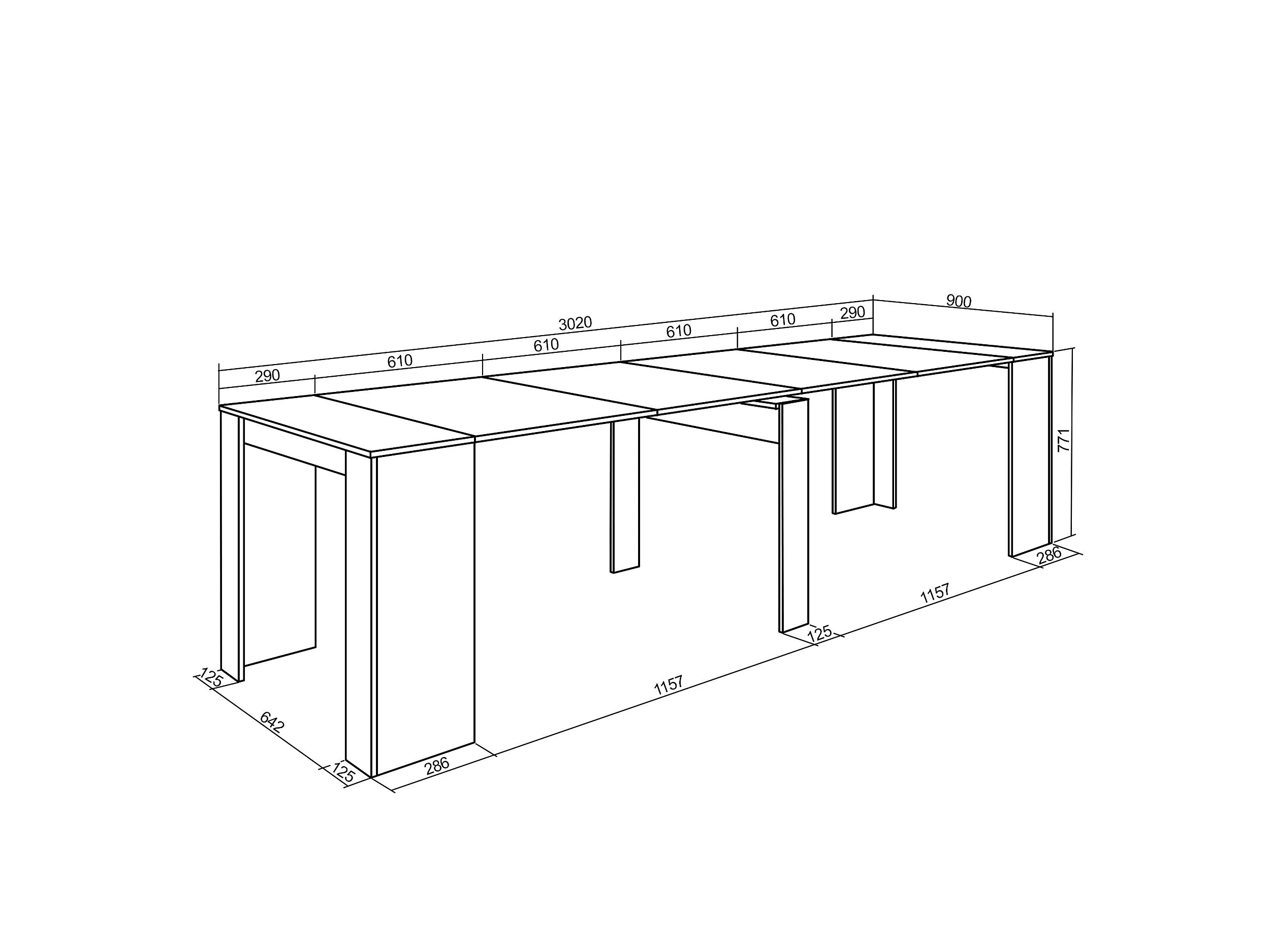 Table console extensible, 302x90x77cm, Pour 14 personnes, Table à Manger, Chêne