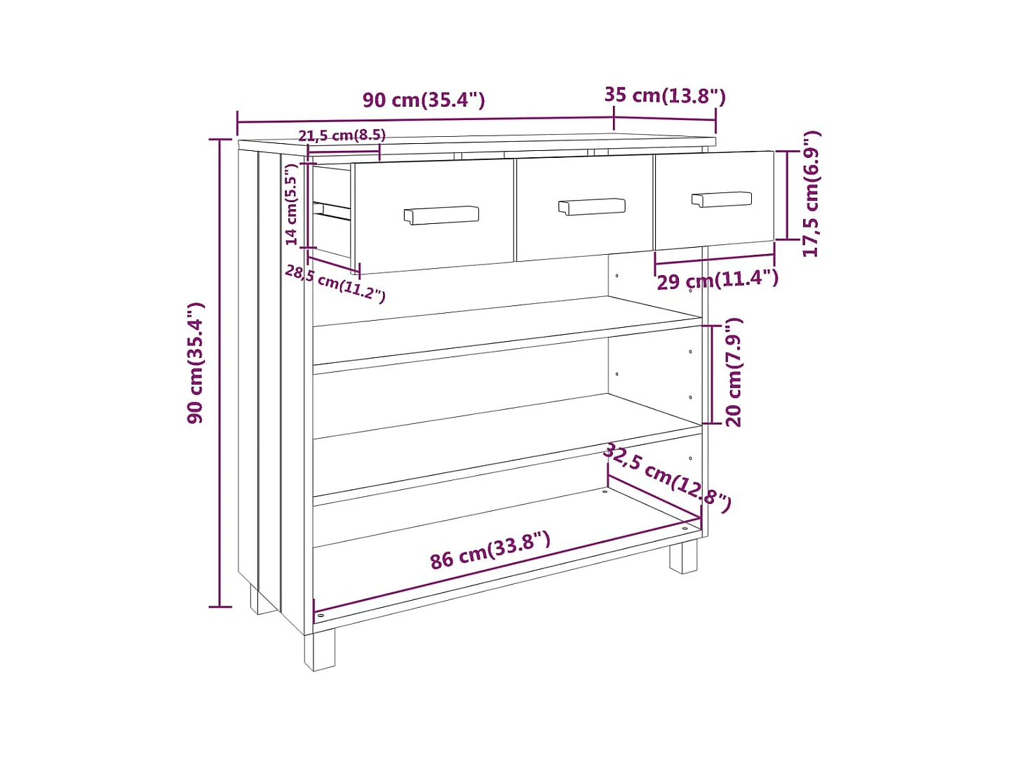 Table console HAMAR Marron miel 90x35x90 cm Bois massif de pin