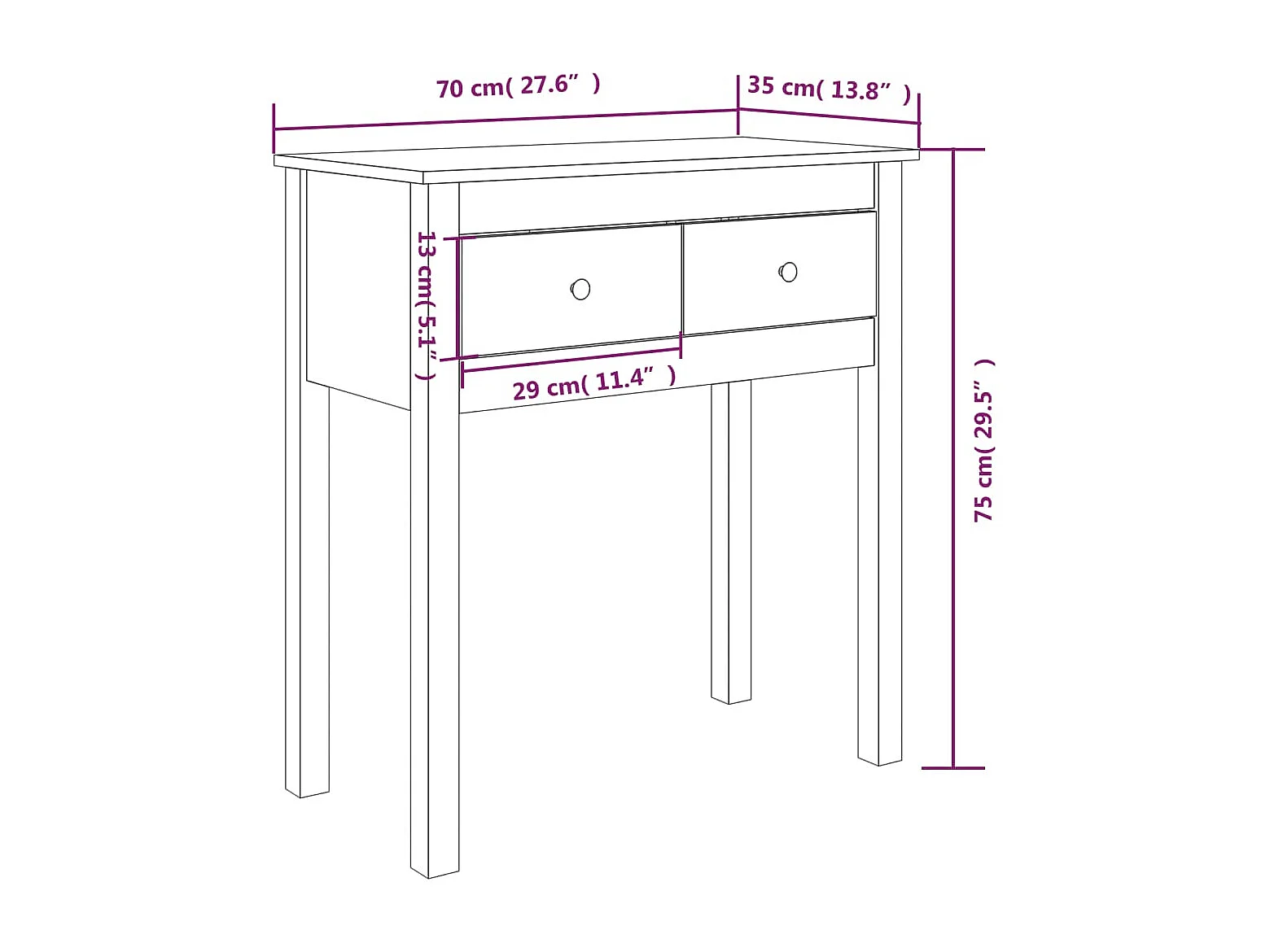 Table console Marron miel 70x35x75 cm Bois massif de pin