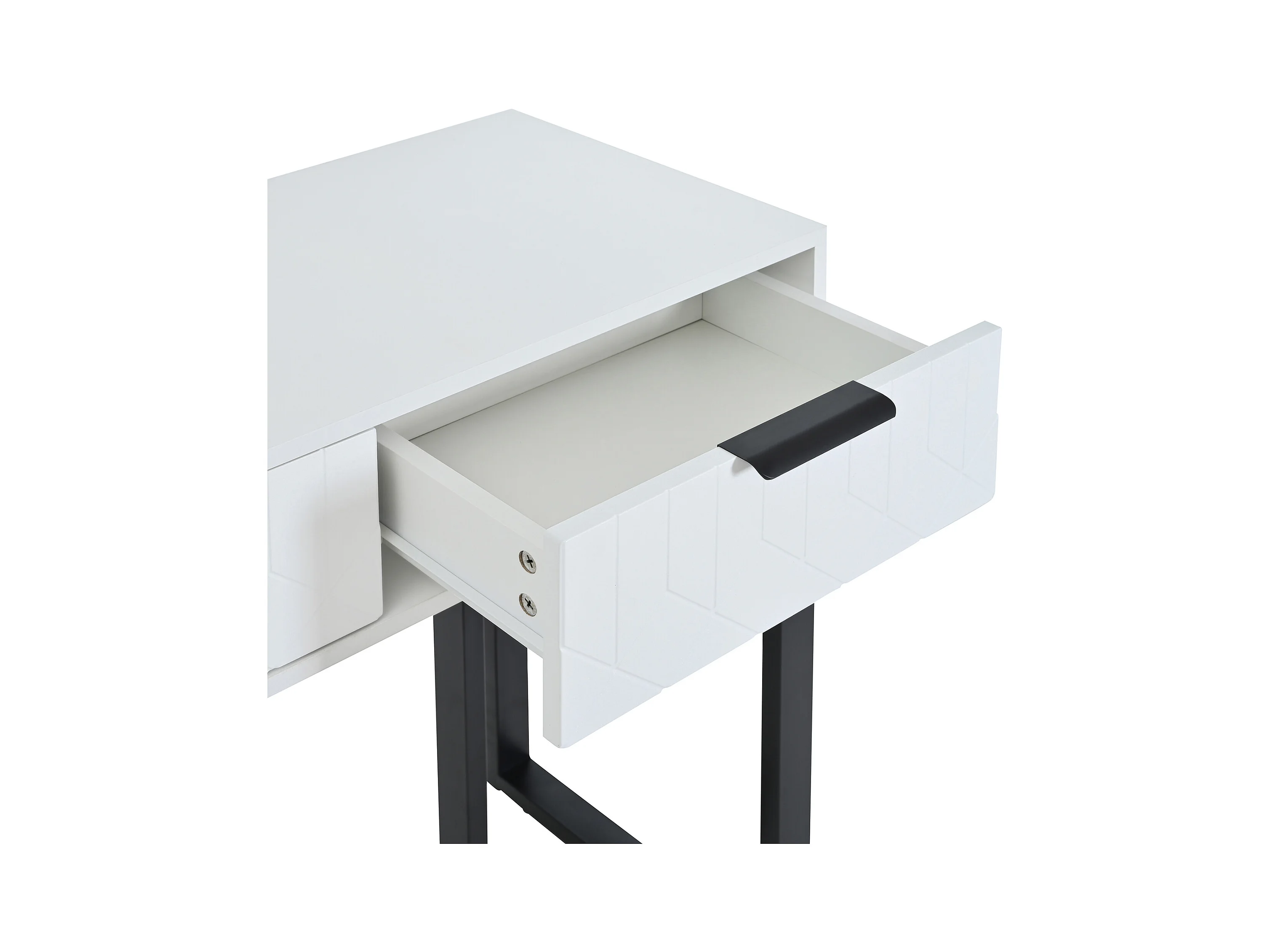 Table console moderne, design creux à 2 tiroirs, Blanc & Noir
