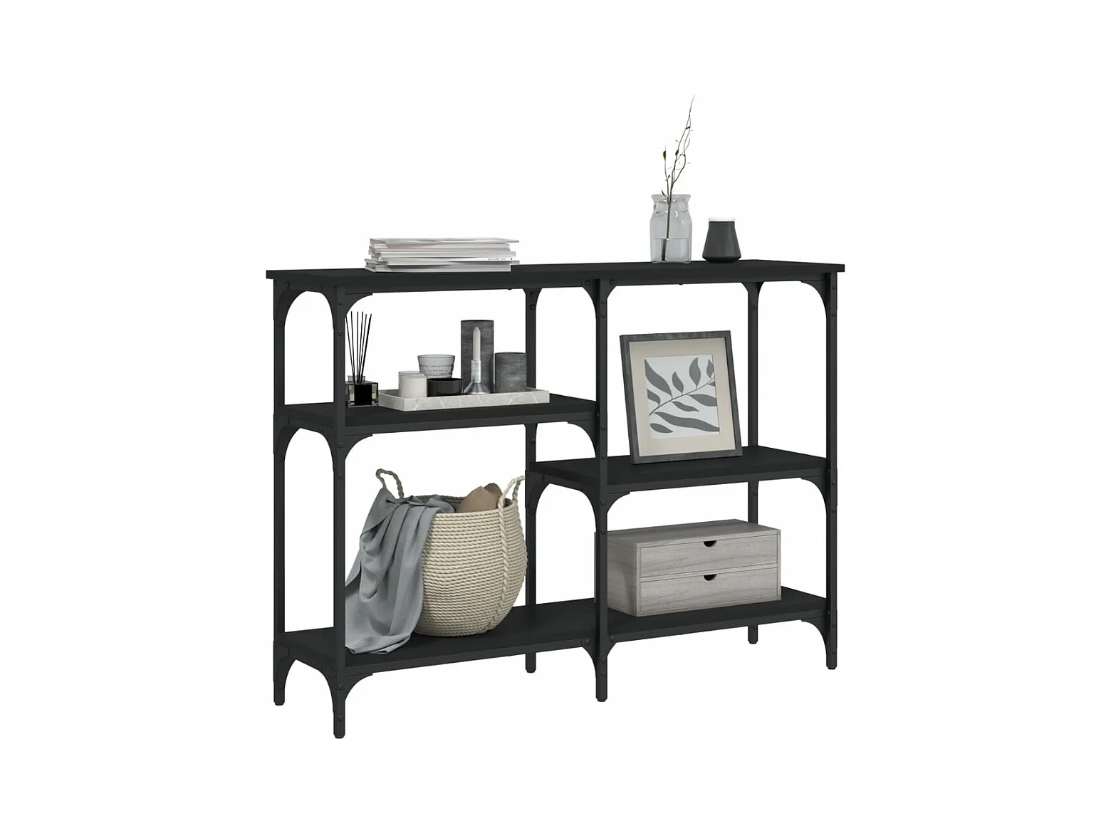 Table console avec étagère noir 100x29x75 cm bois d'ingénierie