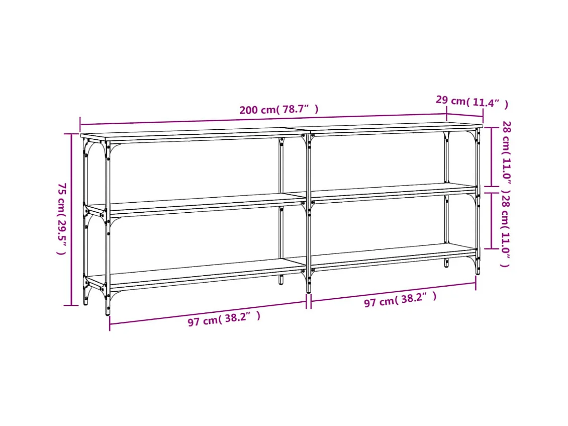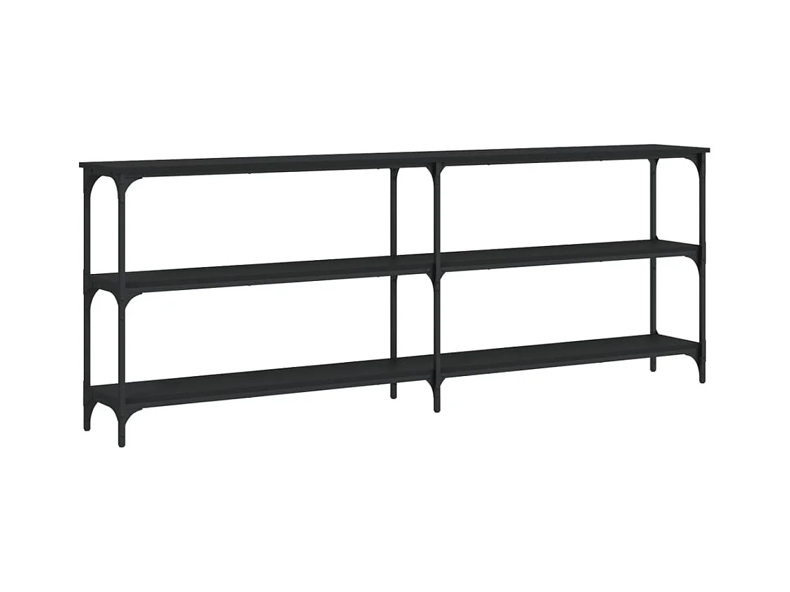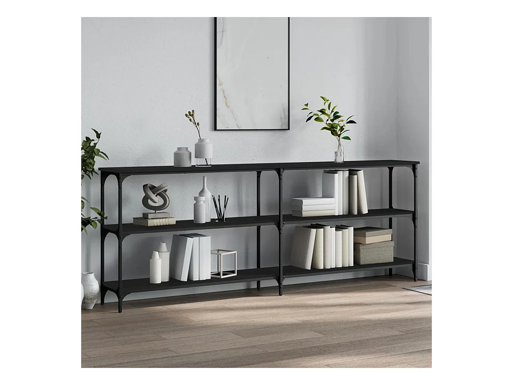 Table console noir 200x30x75 cm bois d'ingénierie et fer