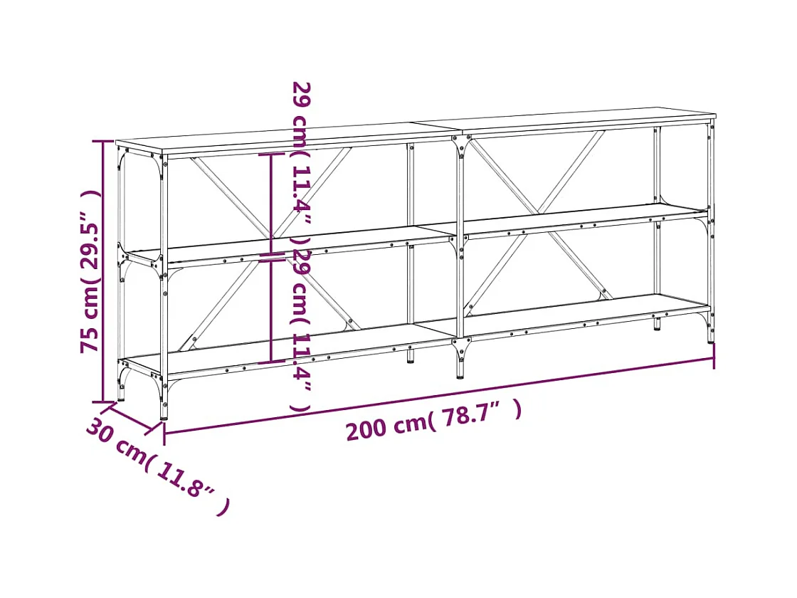 Table console noir 200x30x75 cm bois d'ingénierie et fer