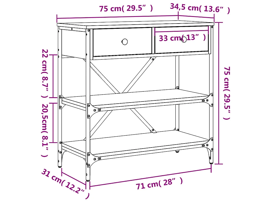 Table console noir 75x34,5x75 cm bois d'ingénierie