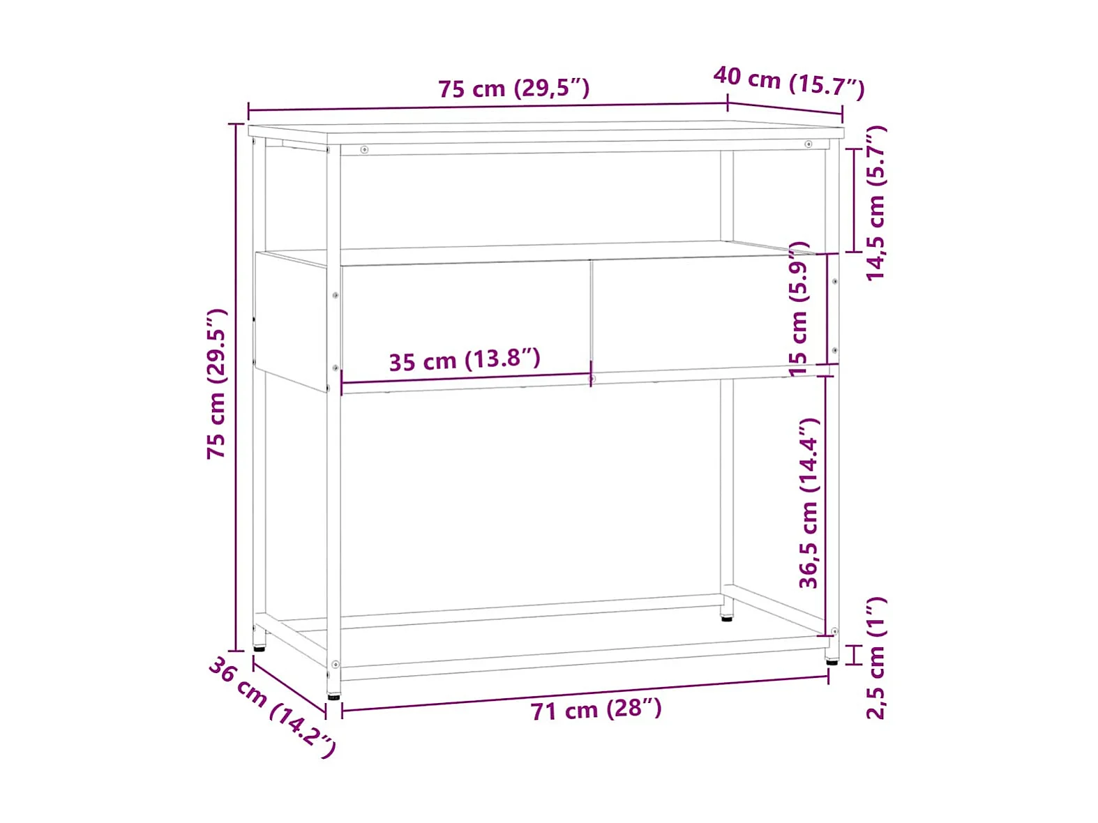 Table Console avec tiroir Chêne noir 75 x 40 x 75 cm