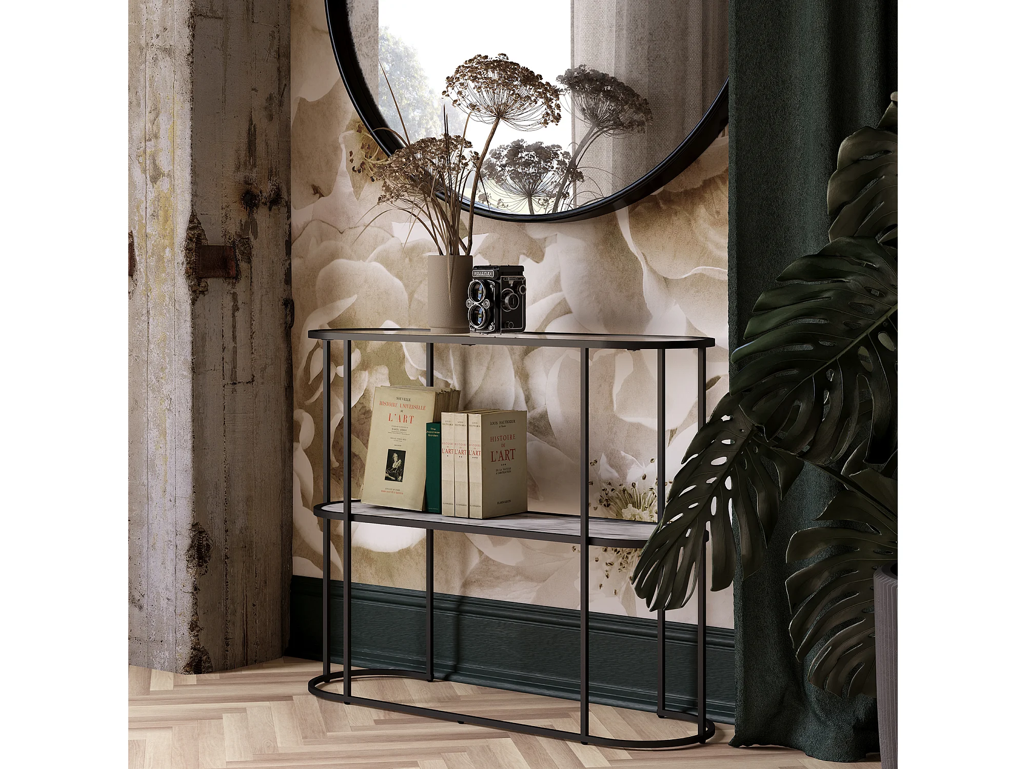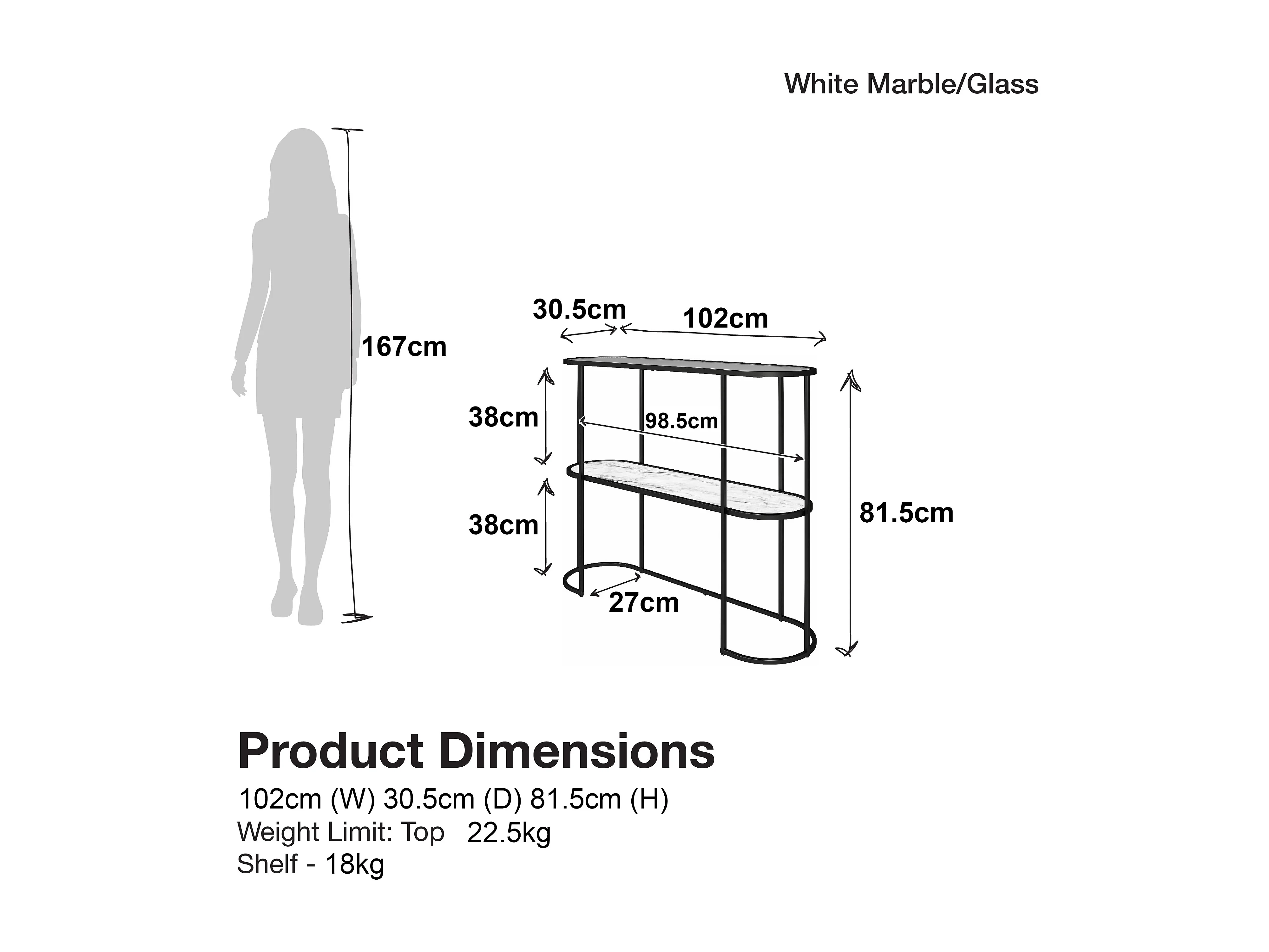 Moon Phases|Table console en effet marbre blanc et verre
