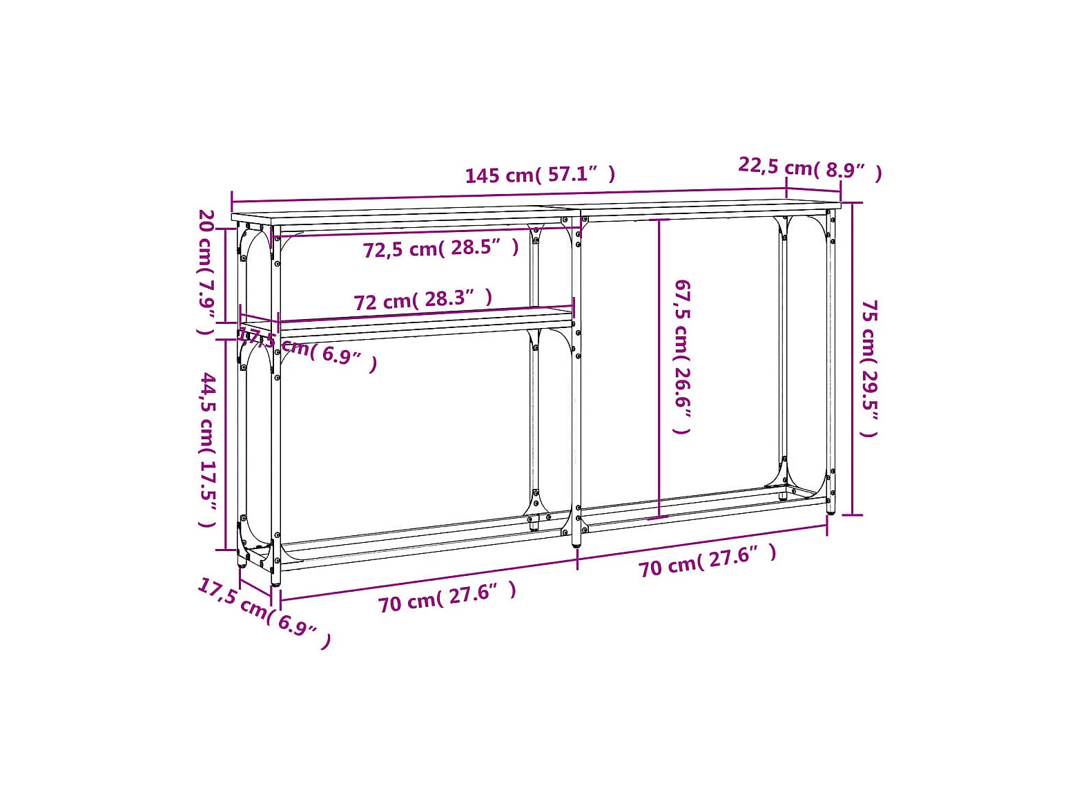 Table console sonoma gris 145x22,5x75 cm bois d'ingénierie