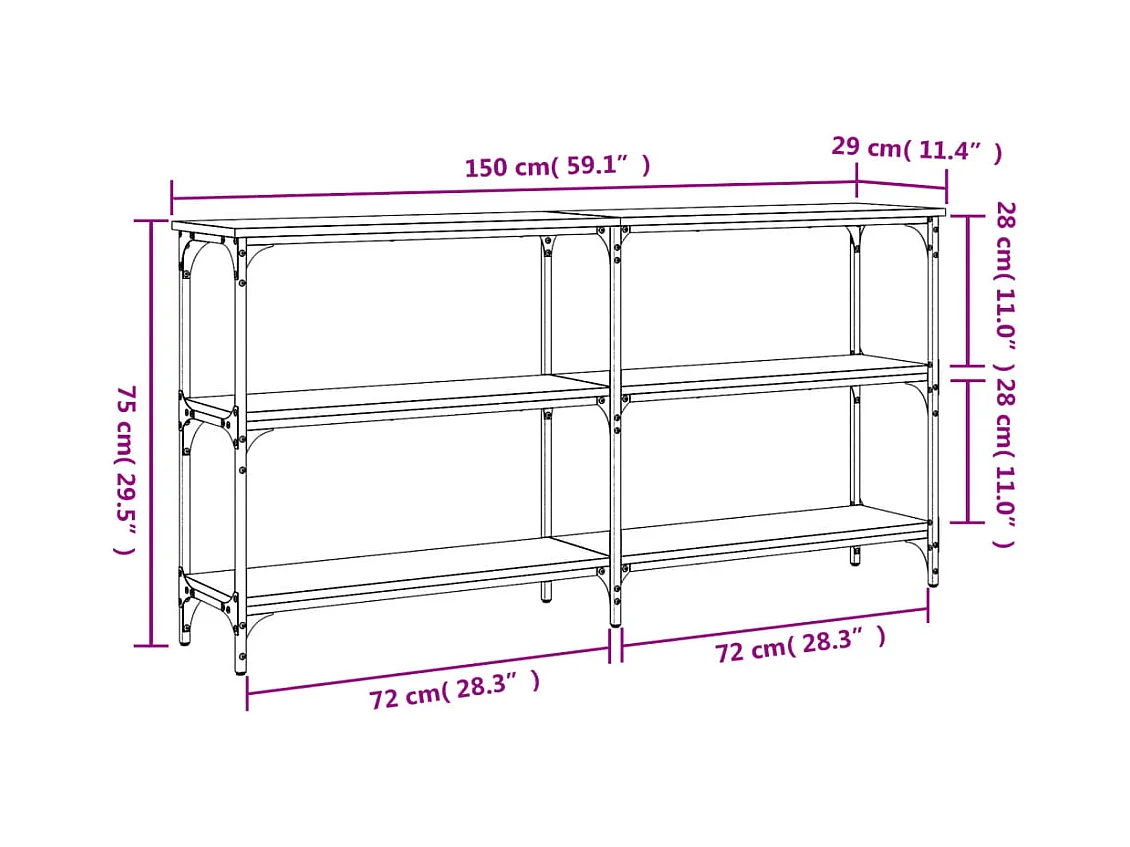 Table console sonoma gris 150x29x76,5 cm bois d'ingénierie