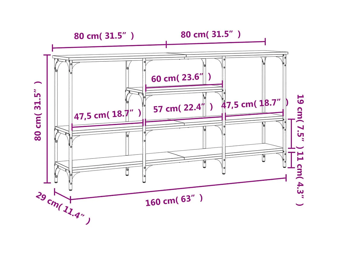 Table console sonoma gris 160x29x80 cm bois d'ingénierie
