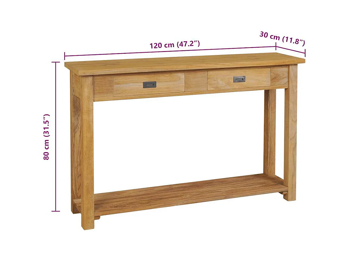 Table console teck massif 120x30x80 cm