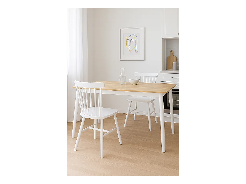 Table cuisine rectangulaire Bois massif 120x75cm maxi 4 personnes NITA (Bois Clair Blanc )