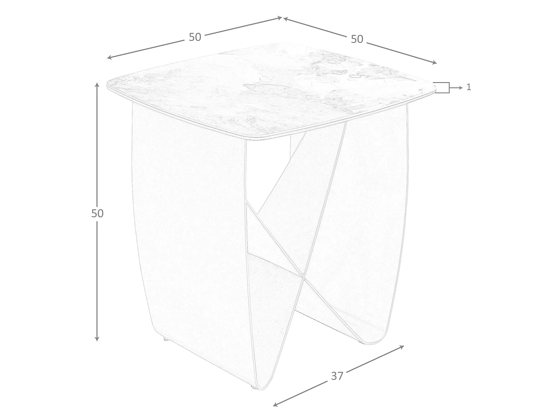 Table d'angle carrée en marbre porcelaine et acier taupe métallique 2145 ANGEL CERDA